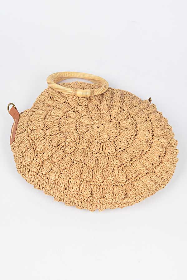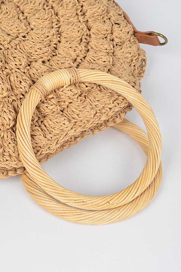 • * Faux Straw Round Wood Handle Bag