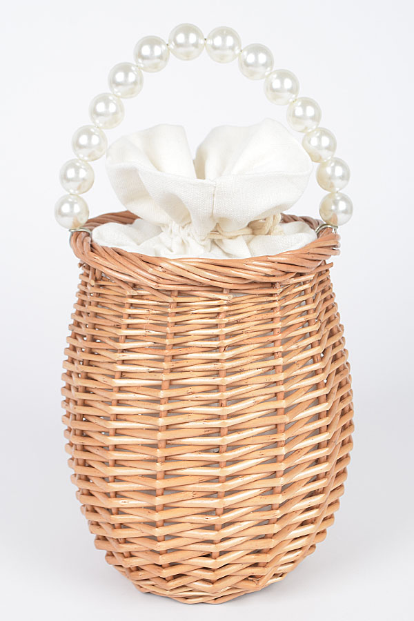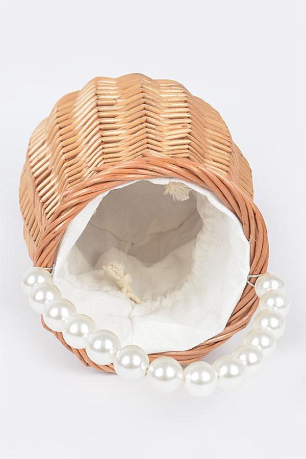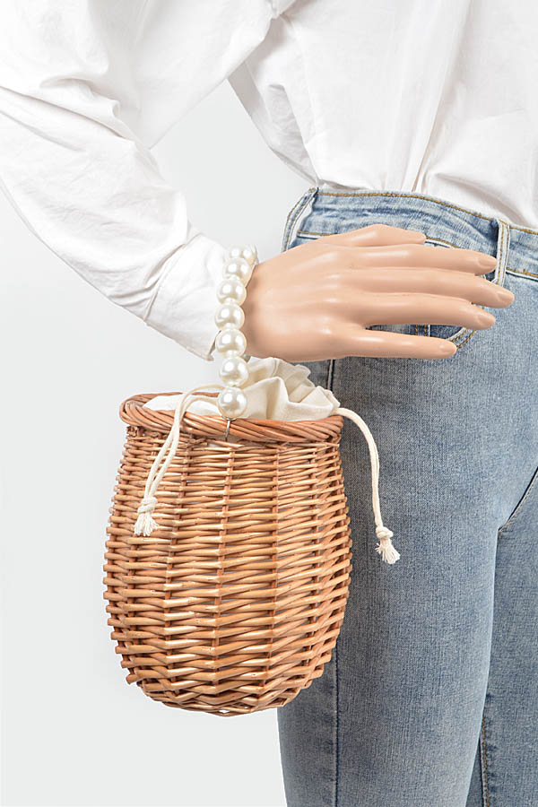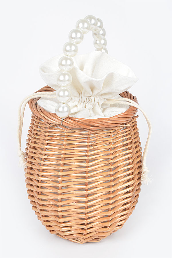 • * This Bamboo Bucket Bag W/Pearl Handle from H&D Accessories features a woven bamboo design with an elegant pearl - adorned handle and a drawstring pouch inside. The bag has a charming and sophisticated look, perfect for adding a touch of elegance to various outfits.