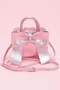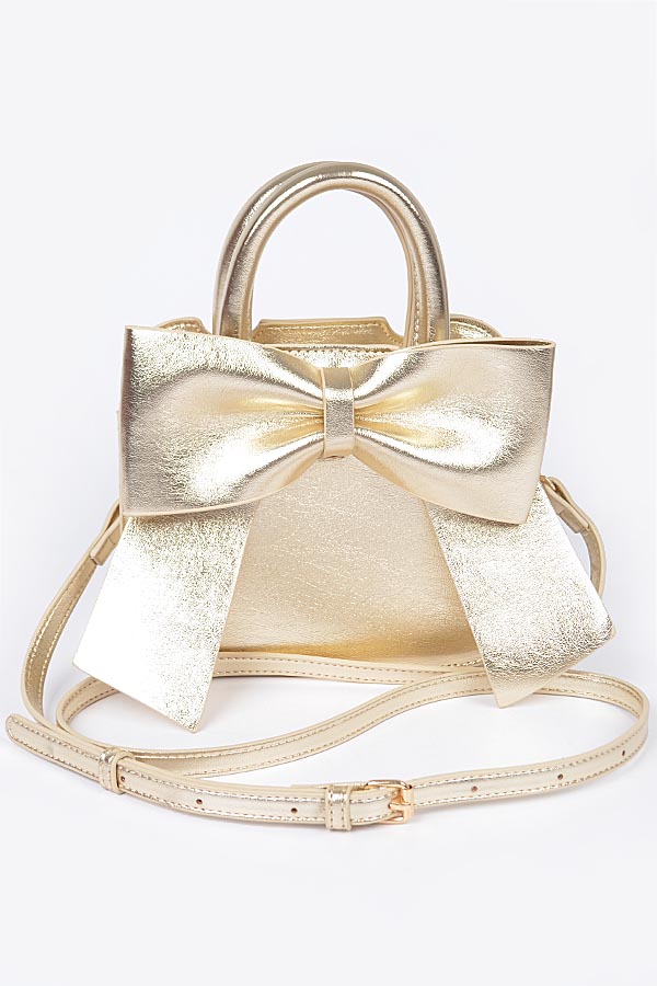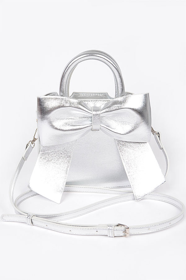 - * METALLIC BOW FRONT TOP HANDLE CLUTCH