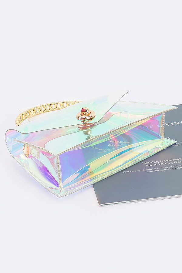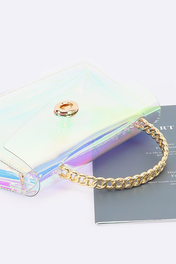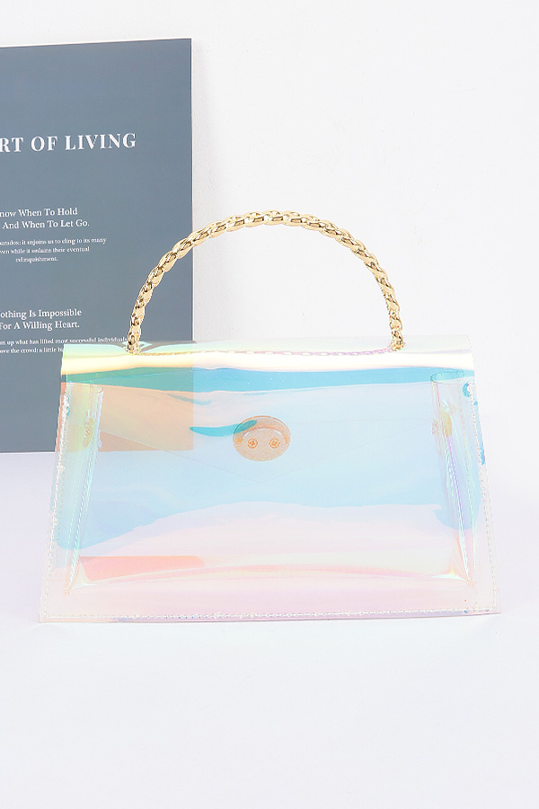 - * Transparent Metal Handle Flap Clutch