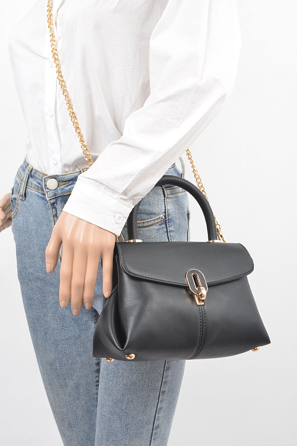 - * Faux Leather Top Handle Bag