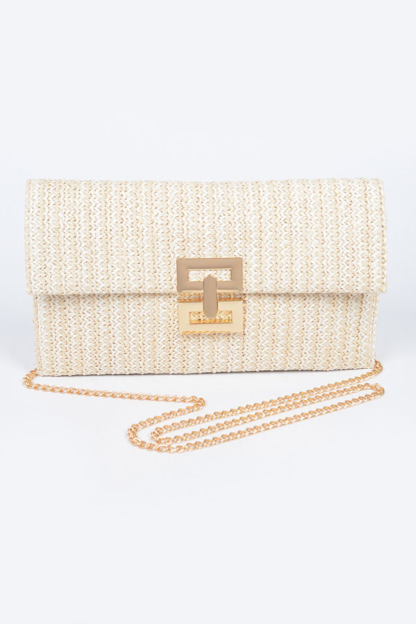 - * Faux Straw Metal Flap Clutch