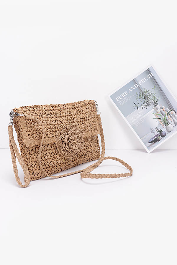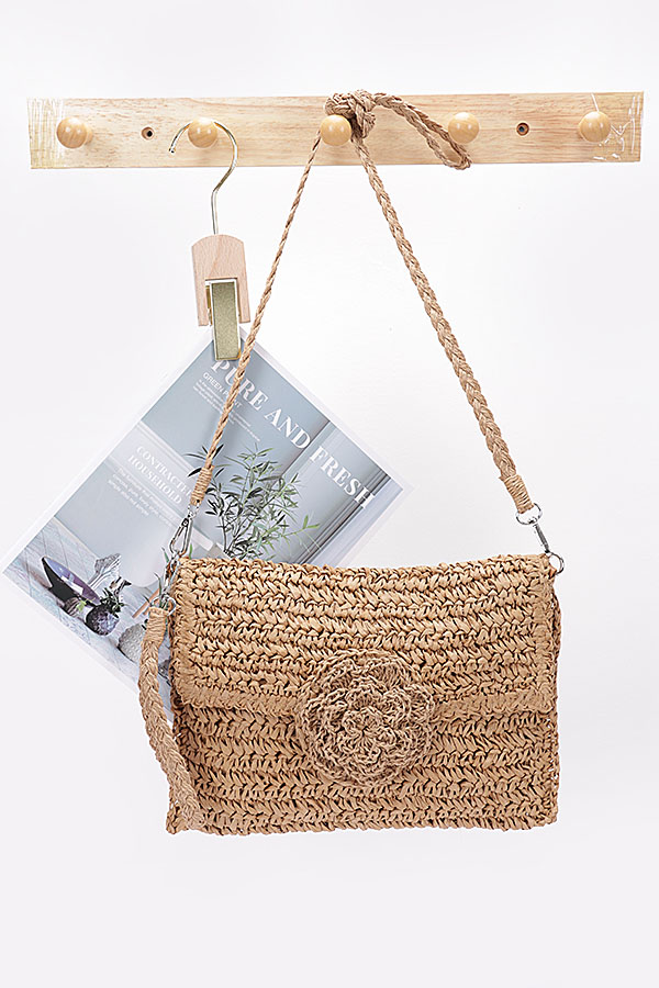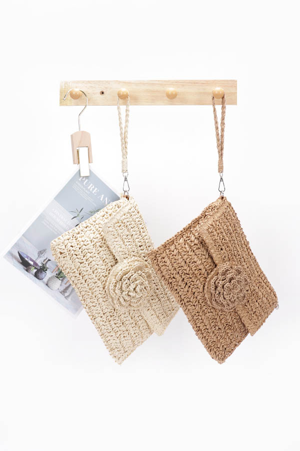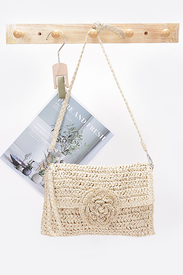- * Faux Straw Handmade Flower Flap Clutch