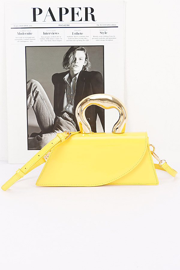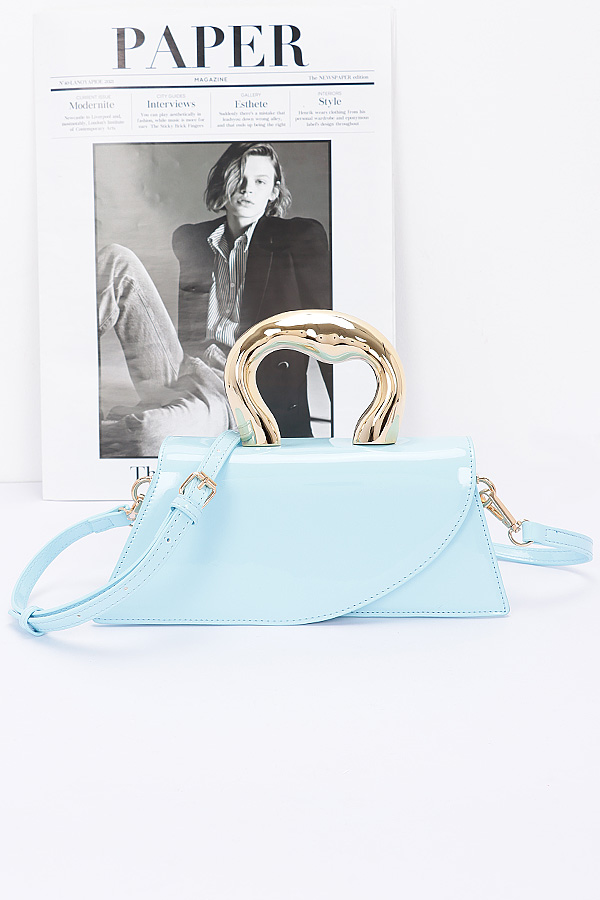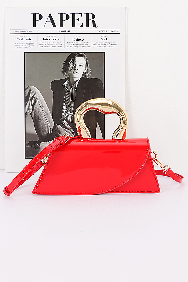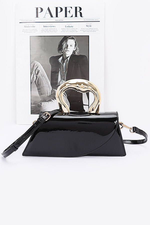 - * Faux Leather Metal Handle Flap Bag