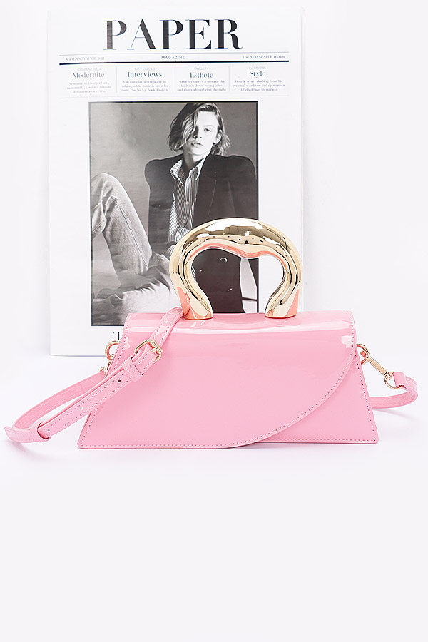 - * Introducing the "Sleek Ring Clutch" – a stunning purse that combines elegance and modernity. With its chic faux leather finish and striking metal ring handle, this bag is perfect for any occasion. Elevate your accessory game with the Sleek Ring Clutch, where style meets functionality.