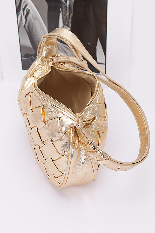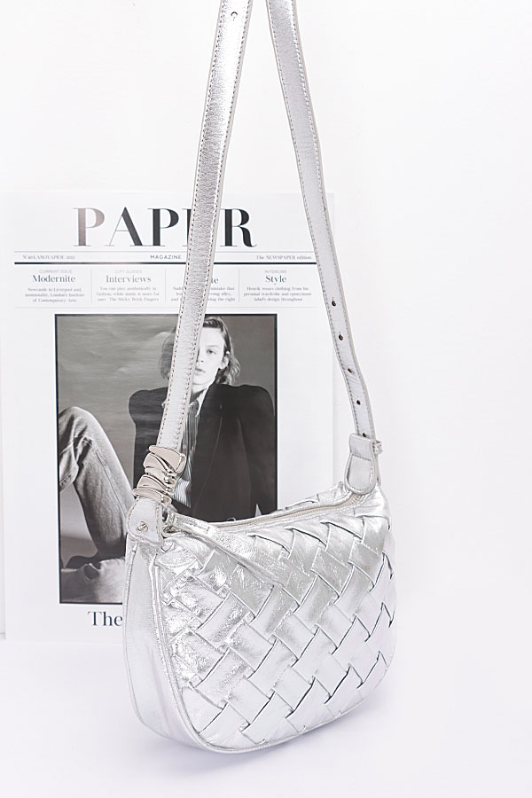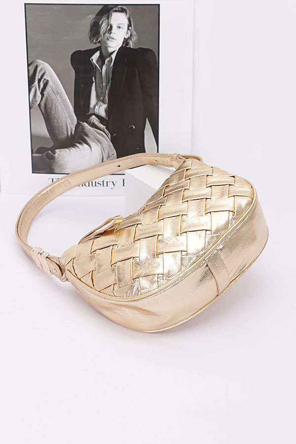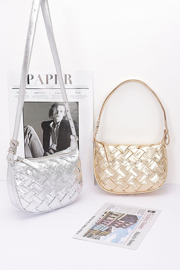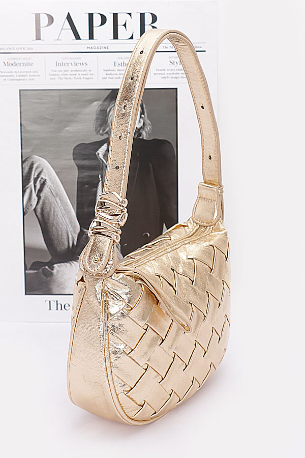 - * Faux Metallic Leather Braided Embossed Shoulder Bag