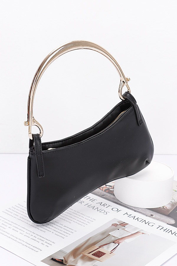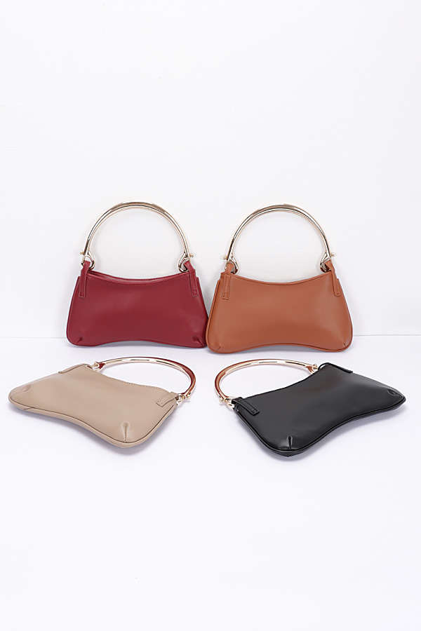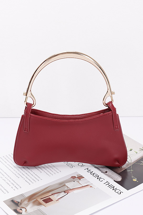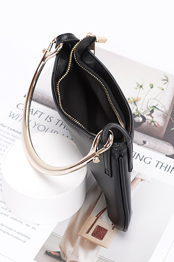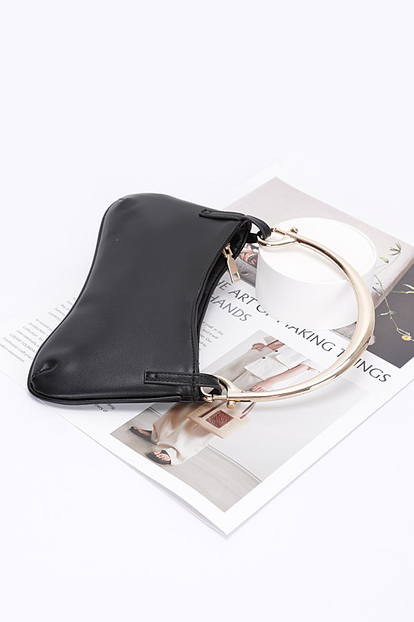 - * Faux Leather Metal Handle Zip Clutch