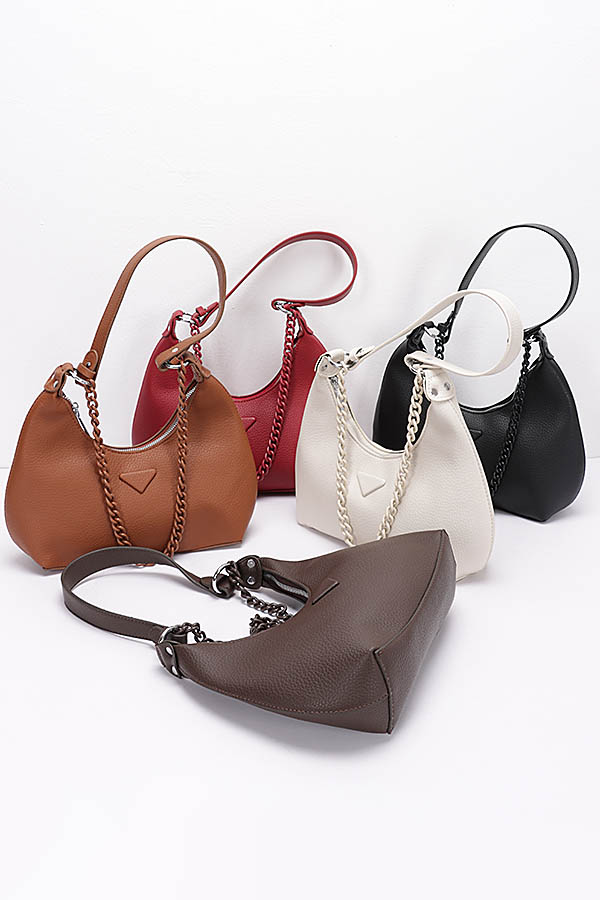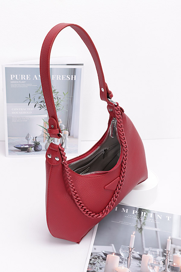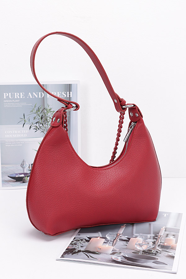 - * The name I came up with for the image is "Crimson Chain Carryall". This stylish leather shoulder bag with a chain strap is perfect for any fashion-forward individual. With its sleek design and durable material, it's the ideal accessory to complete your outfit. The brand name "H&D accessories" adds a touch of sophistication and elegance to this trendy handbag.