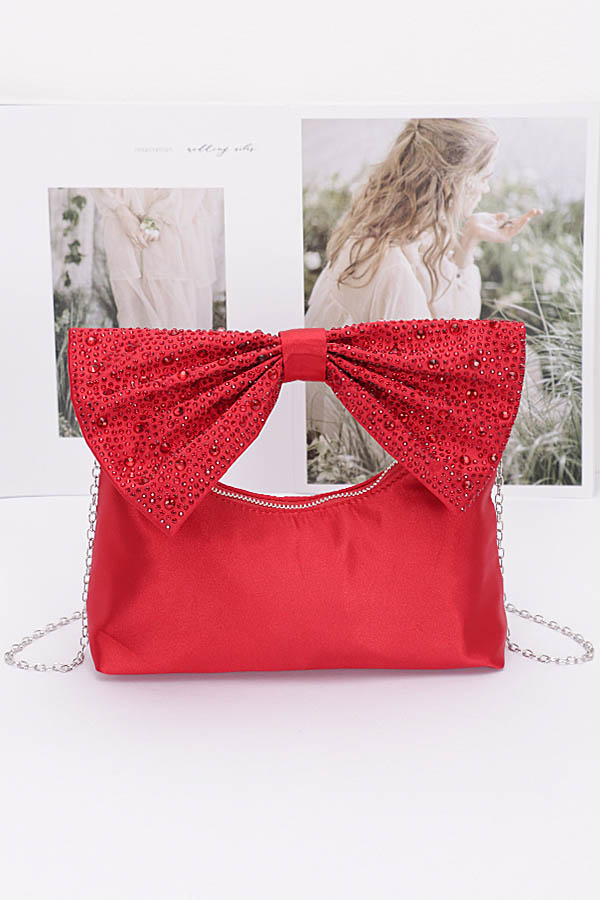 - * Rhinestone Hotfix Bow Handle Nylon Clutch