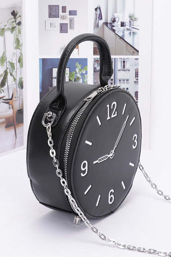 • * Introducing the Faux Leather Clock Novelty Bag: a chic bag that seamlessly blends style and functionality. With its unique clock design, this faux leather novelty bag from H&D Accessories is perfect for the fashion-forward individual who values both aesthetics and practicality.