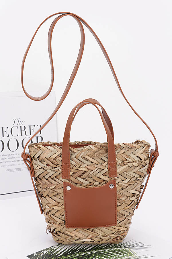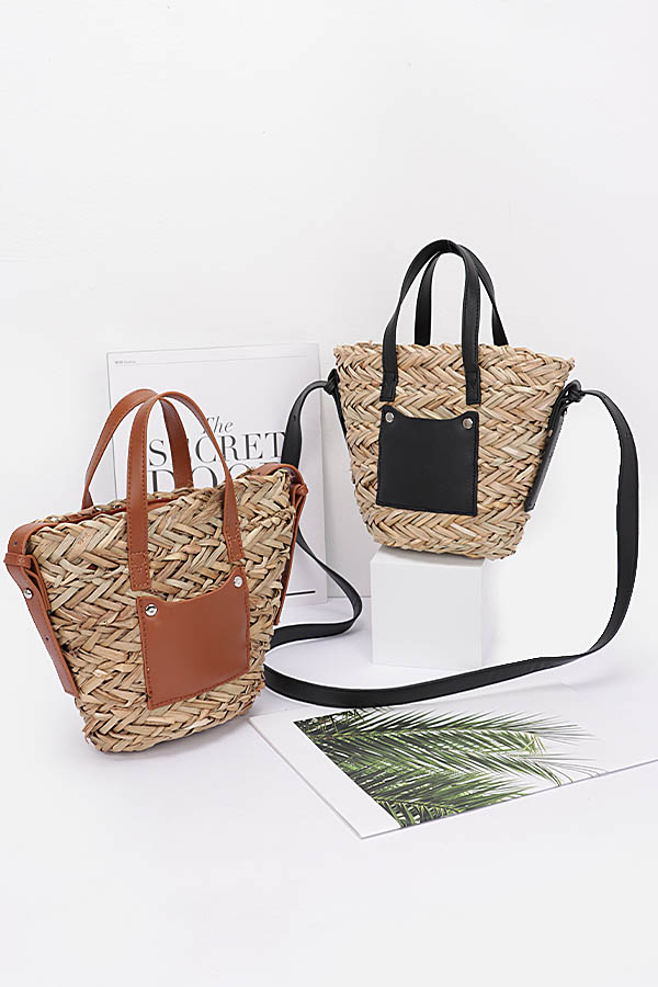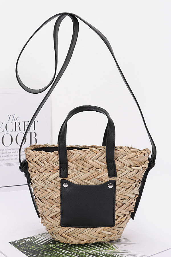 • * Faux Straw Small Tote Bag
