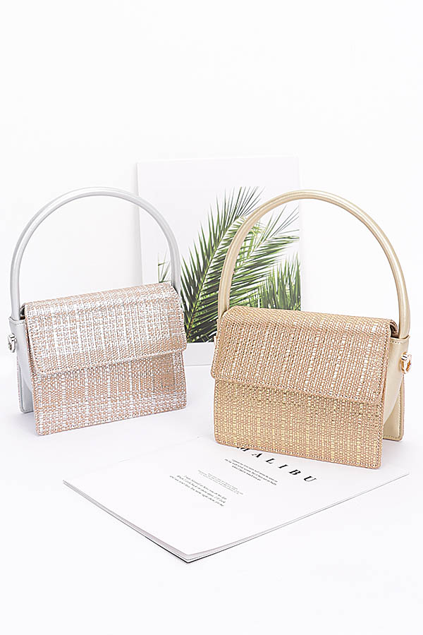 • * Introducing the "Golden Weave Elegance" – a stunning metallic faux straw top handle bag that combines luxury and practicality. Crafted from exquisite woven fabric, this bag is not just an accessory; it's a statement piece that elevates any outfit. Embrace sophistication and style with every carry.