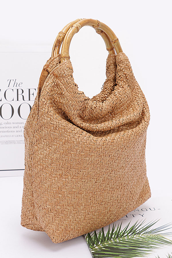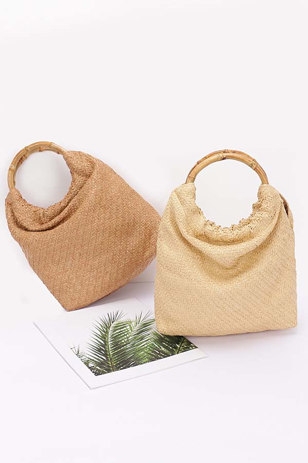 - * Faux Straw Bamboo Handle HandBag