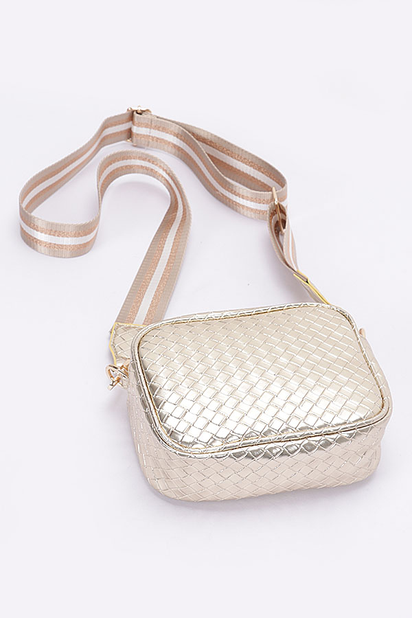 • * Metallic Embossed Faux Leather Camera Bag w/Strap