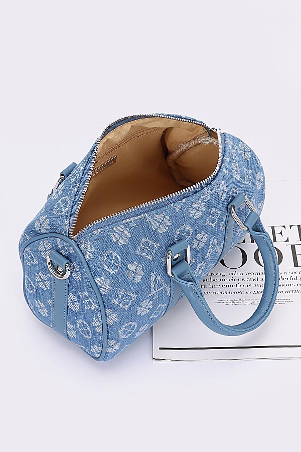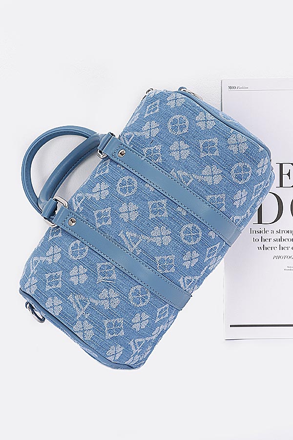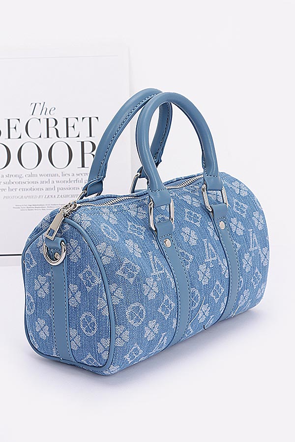 - * Introducing the "Embossed Denim Bowling Bag" from H&D Accessories – a stunning fusion of high fashion and casual elegance. This exquisite blue Louis Vuitton-inspired bag, crafted from embossed denim, is the perfect accessory for those who appreciate both style and functionality. Elevate your wardrobe with this statement piece that effortlessly combines sophistication with a laid-back vibe.