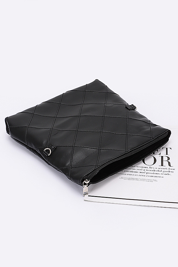 - * Introducing the "Mystique Clutch" – a stunning quilted faux leather pouch that combines elegance with intrigue. Featuring a chic chain strap and a playful secret door sign, this accessory is perfect for those who love to make a statement while keeping their essentials stylishly hidden. Elevate your outfit with the Mystique Clutch and let your personality shine through!