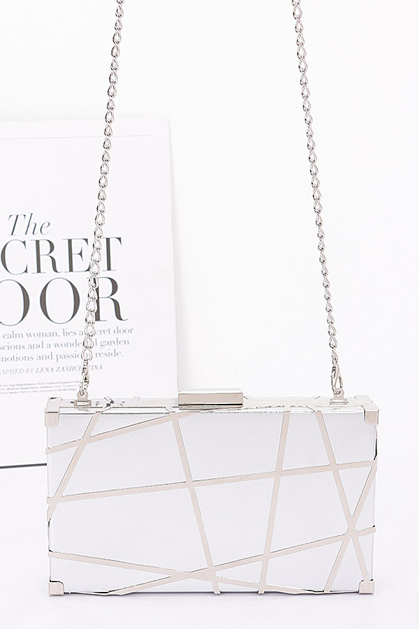 • * Introducing the "Metal Case Metallic Clutch" – a stunning bag that perfectly combines sophistication and style. With its sleek metallic finish and chic chain strap, this accessory from H&D Accessories is designed to elevate any outfit, making it the ideal choice for your next special occasion.