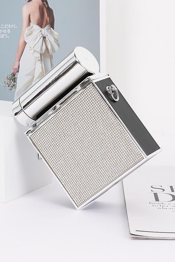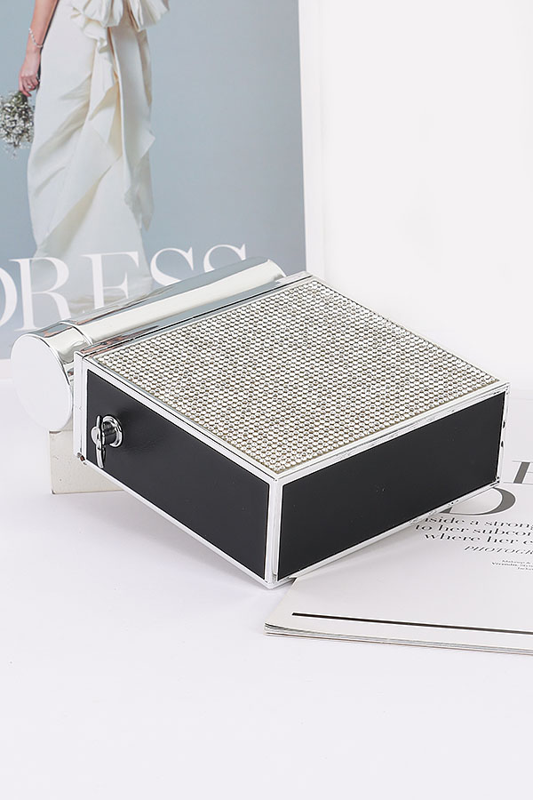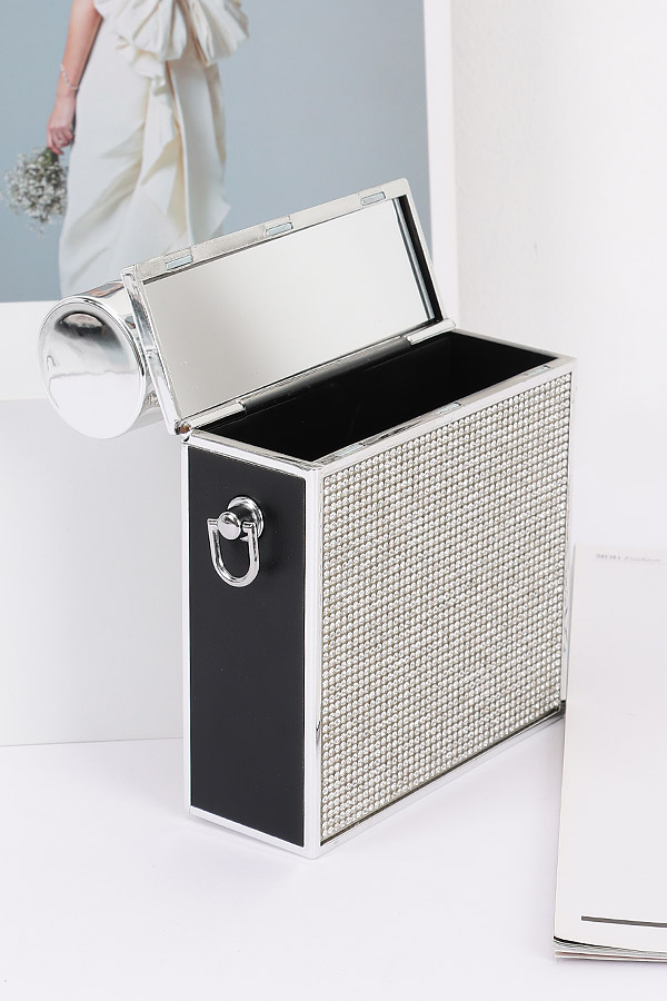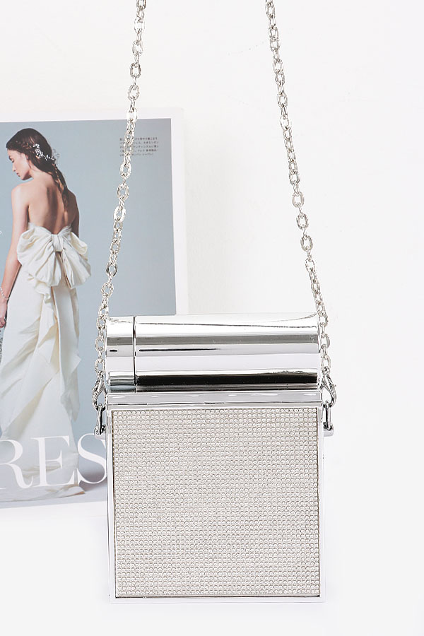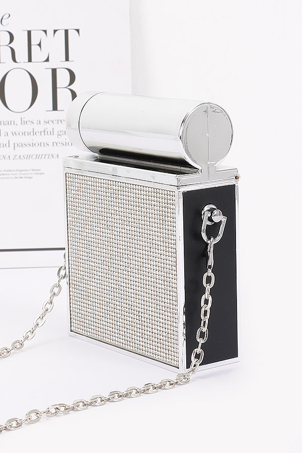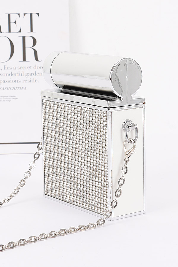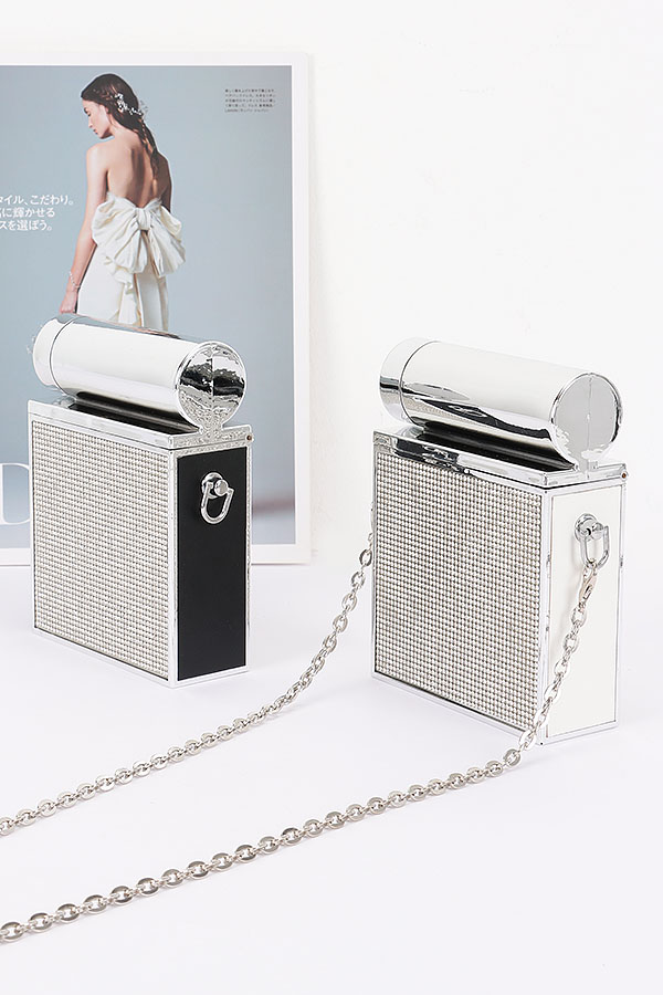 - * This Rhinestone Acrylic Case Bag from H&D Accessories is a glamorous and eye - catching accessory. It features a sleek acrylic body adorned with numerous rhinestones, giving it a luxurious and sparkling appearance. The unique cylindrical top and chain strap add to its modern and stylish design.