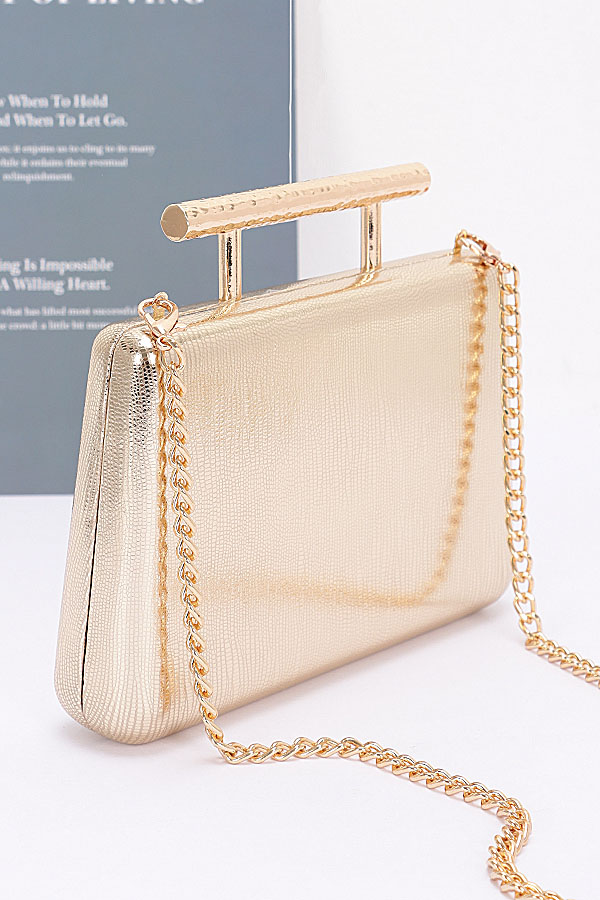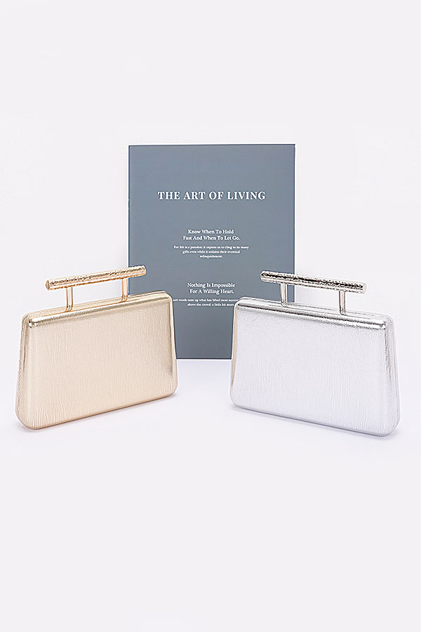 - * Introducing the "Metal Handle Top Case Clutch" – a stunning bag that perfectly combines sophistication and practicality. With its sleek finish and stylish chain strap, this clutch is designed to elevate any outfit. This unique statement piece, ideal for the modern woman who values both fashion and function. Make a lasting impression with the Silver Elegance Clutch from H&D Accessories.