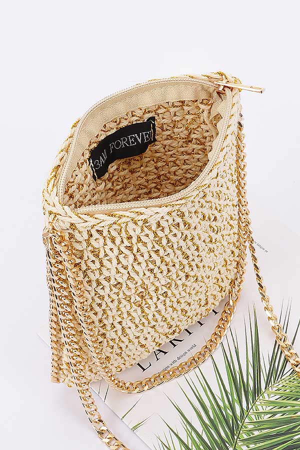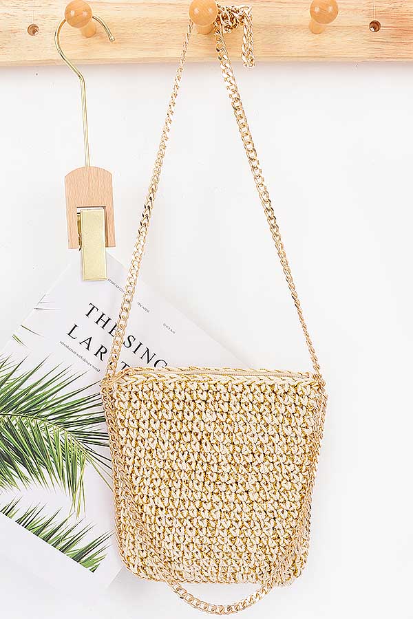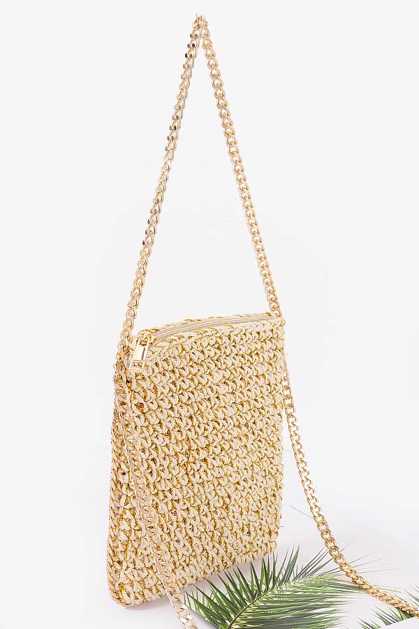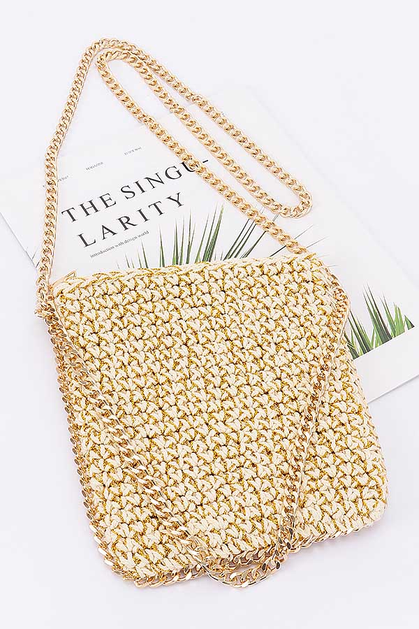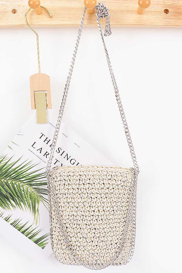 - * Discover the "Braided Cotton Chain Crossbody Bag" – where sophistication meets functionality. This beautifully crafted woven bag with a stylish chain is designed to turn heads. Make a statement and enhance your wardrobe with this fabulous creation from H&D Accessories.