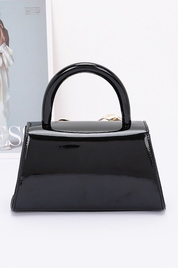 - * Faux Leather Metal Ribbon Top Handle Bag