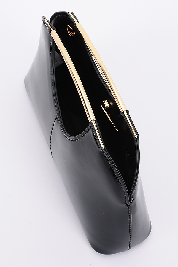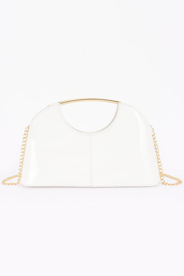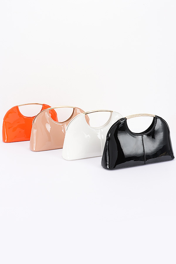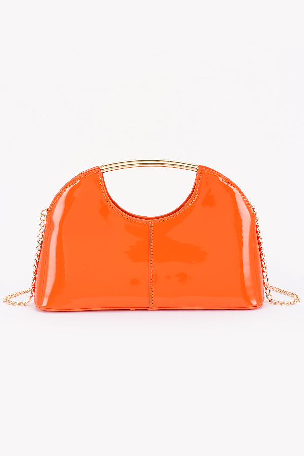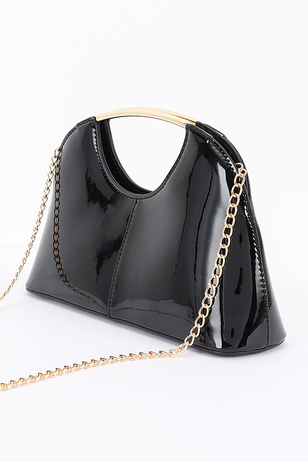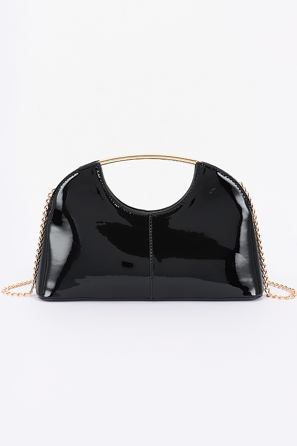 - * This Enamel Faux Leather metal Handle Clutch from H&D Accessories is an elegant and sophisticated accessory. It features a sleek, glossy faux leather body with a distinctive metal handle, exuding a sense of modern luxury. The addition of chain straps provides versatile carrying options.