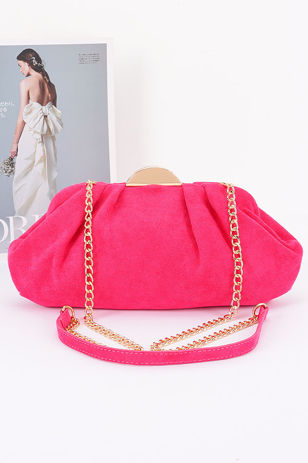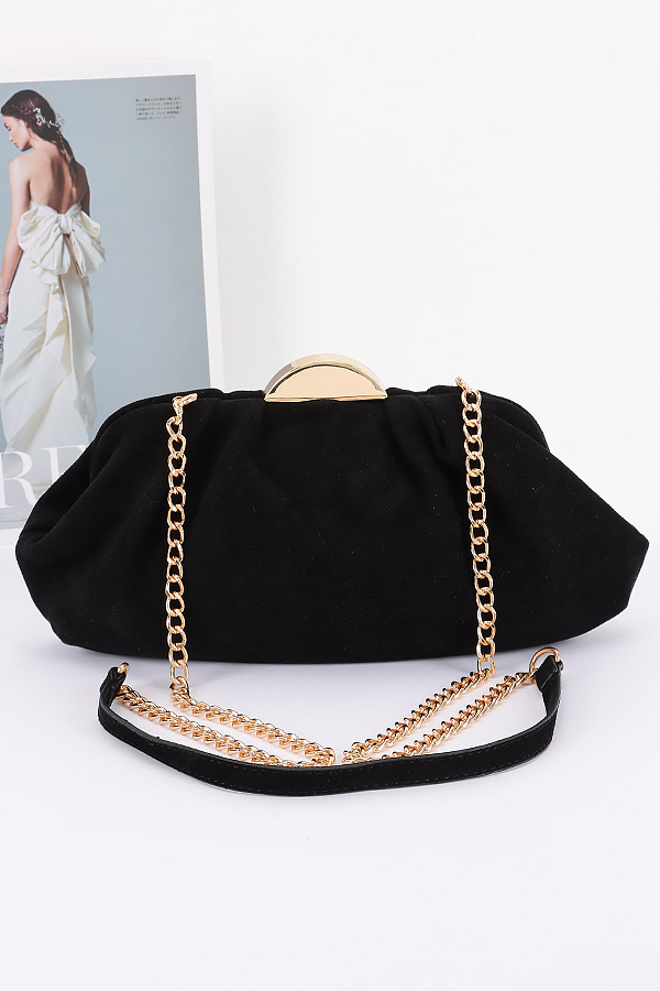 - * This Faux Suede Party Clutch from H&D Accessories is a stylish and elegant accessory. It features a soft faux suede material with a gathered design, giving it a sophisticated and trendy look. The addition of a gold - toned chain strap and clasp adds a touch of luxury.