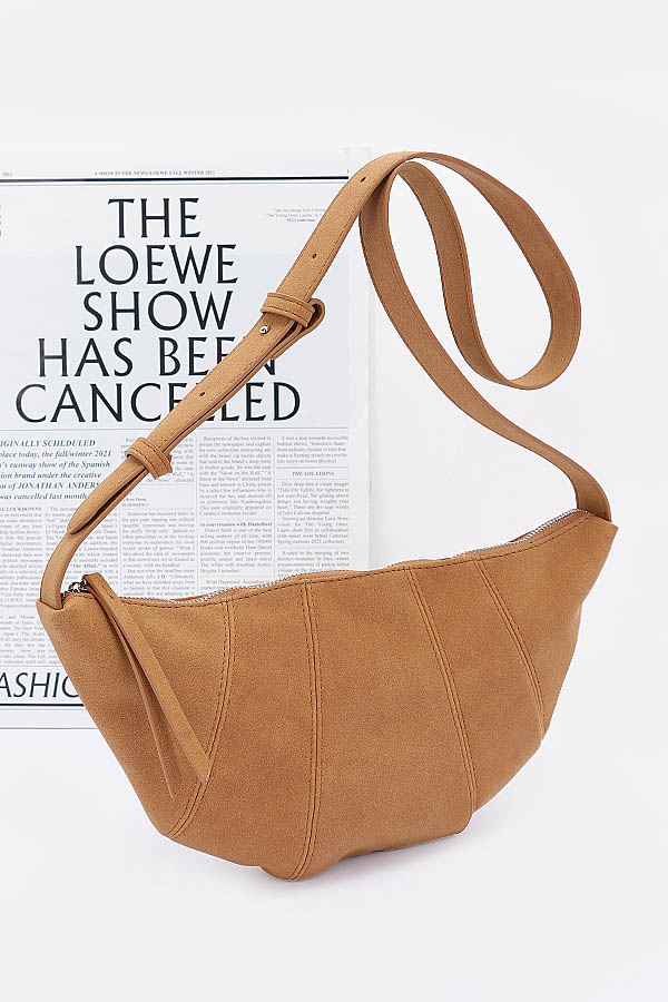 • * Introducing the "Faux Suede Croissant Bag" from H&D Accessories – a stylish bag that effortlessly combines practicality with a touch of sophistication. This bag is perfect for those who want to carry their essentials while making a fashion statement. With its unique design inspired by the classic croissant shape, it's not just a bag, it's a conversation starter. Elevate your accessory game with the Faux Suede Croissant Bag!
