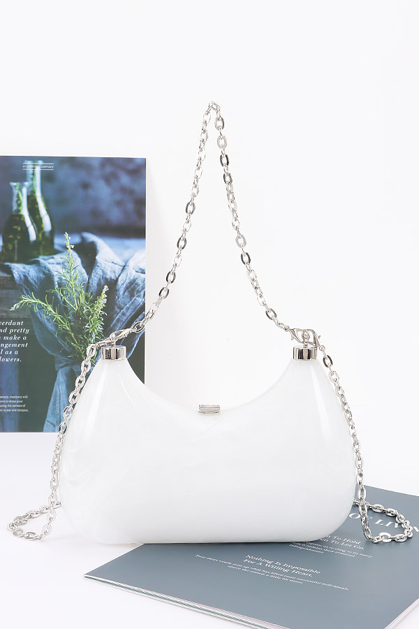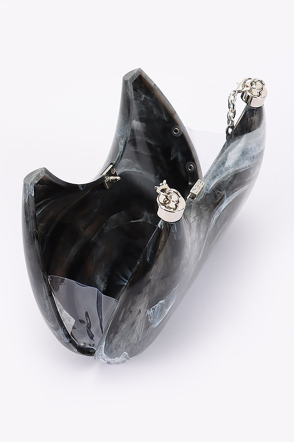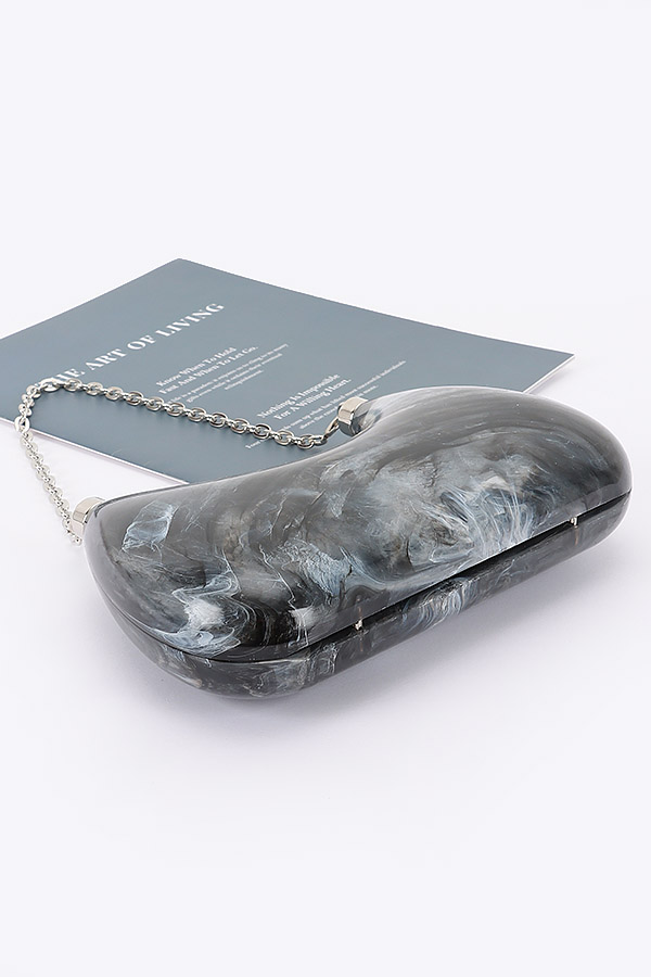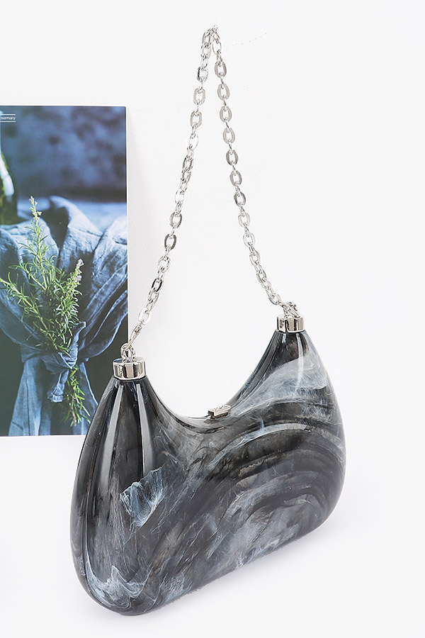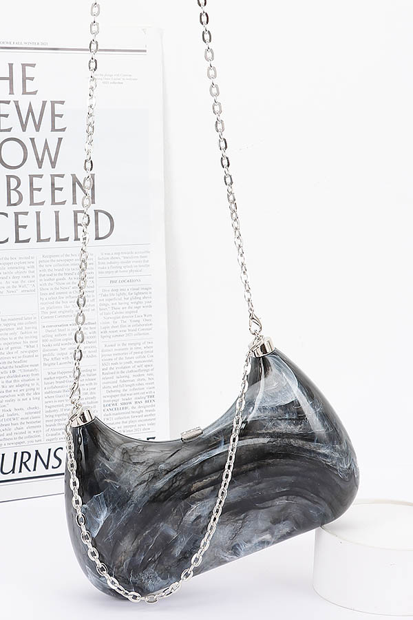 - * Introducing the "Marble Chic Chain Clutch" – a stunning black and white purse that effortlessly combines elegance with modern flair. Crafted from faux marble acrylic, this accessory is perfect for making a bold statement at any event. Elevate your style with this must-have piece from H&D Accessories.