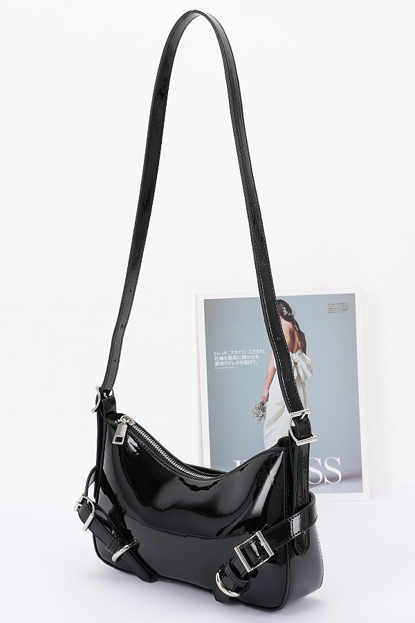- * This Enamel Faux Leather Multi Buckle Crossbody Bag from H&D Accessories exudes a modern and edgy charm. The bag is made of glossy enamel - finished faux leather, giving it a sleek and polished appearance. It features multiple metallic buckles as decorative elements, adding a touch of industrial - style flair. With an adjustable crossbody strap, it offers both comfort and convenience. Ideal for fashion - forward individuals seeking a statement accessory.