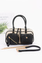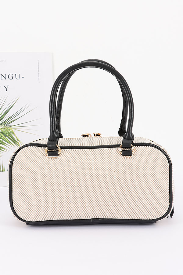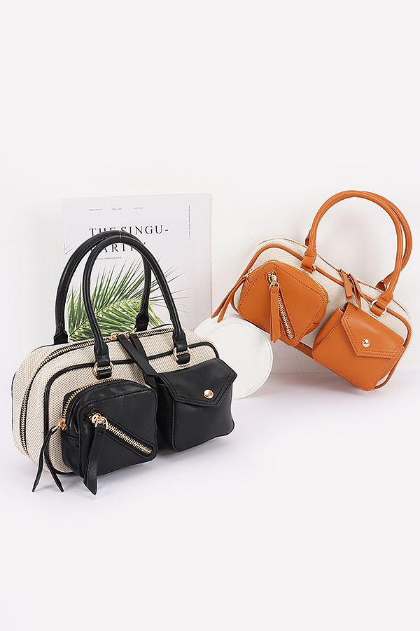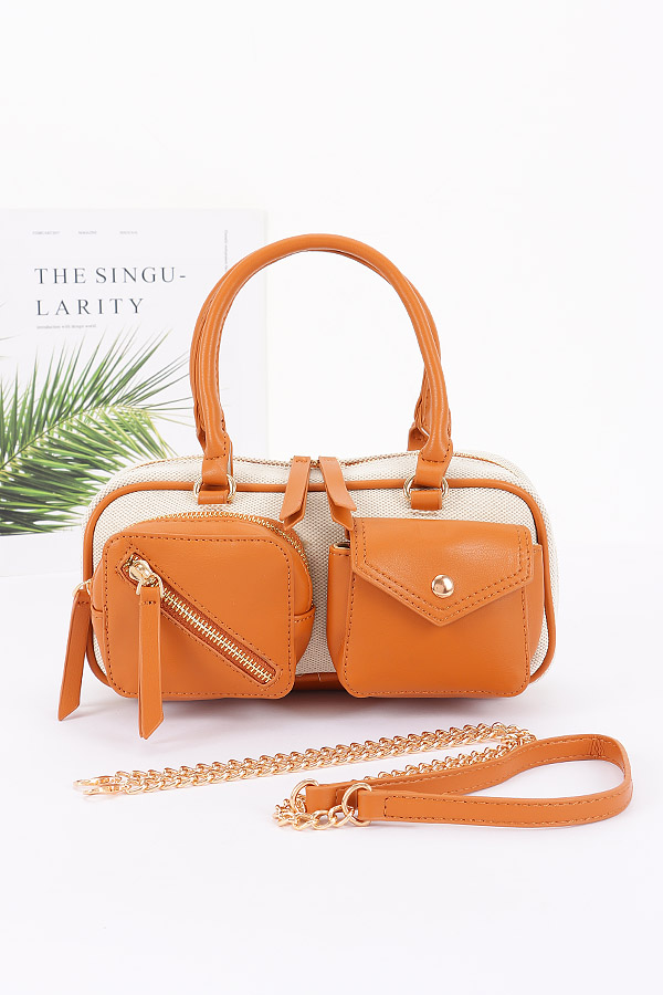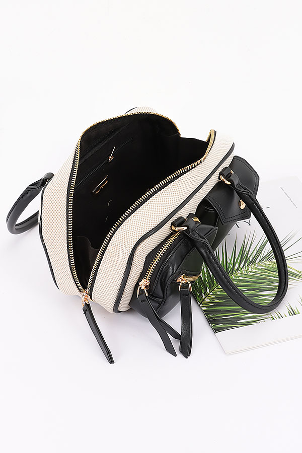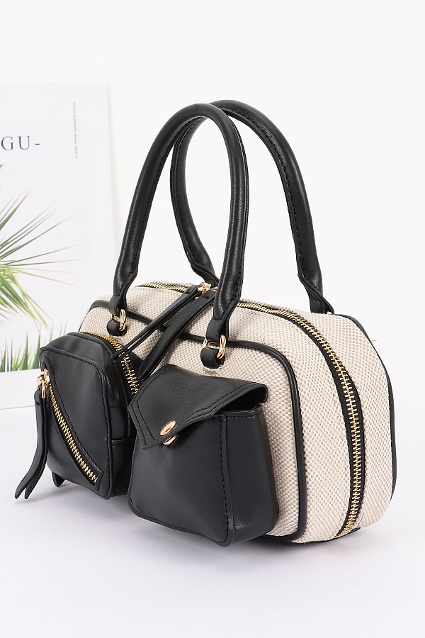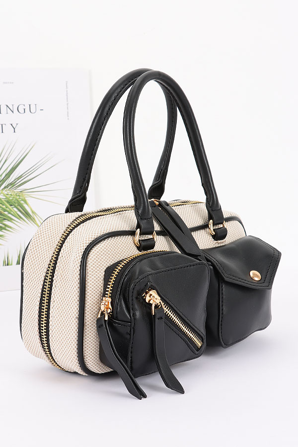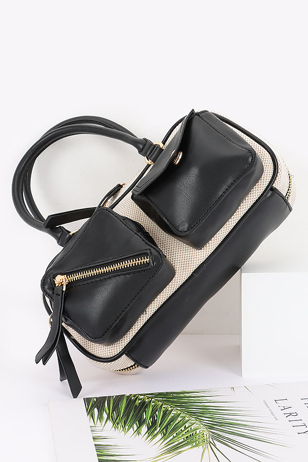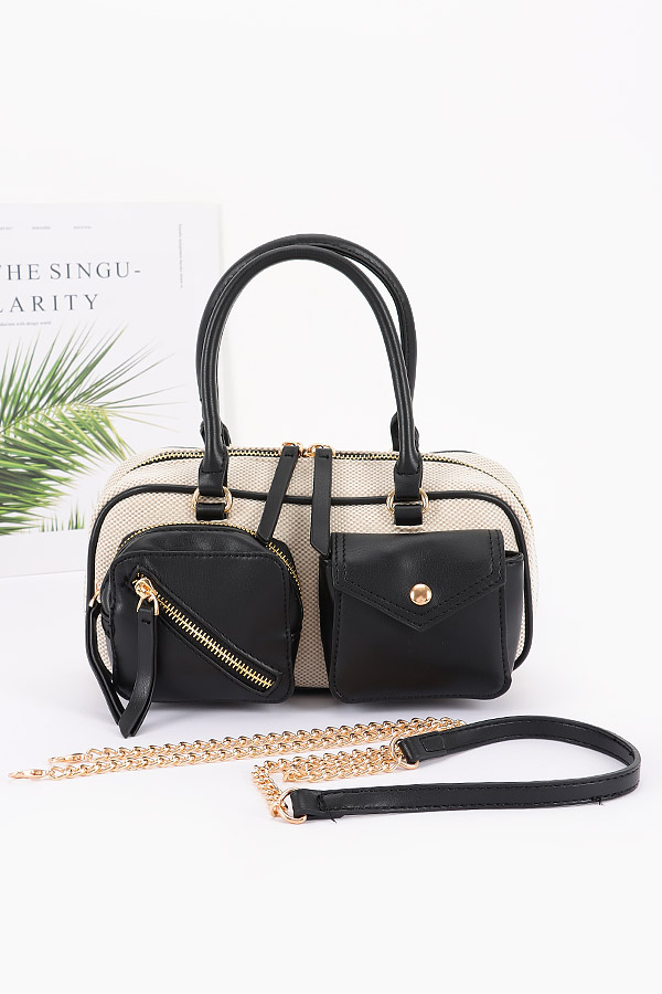• * This Two Pockets Front Cotton Zip Bag from H&D Accessories is a chic and practical accessory. It features a cotton body with a combination of black faux leather accents on the front pockets. The bag has a top - zip closure and comes with both a chain strap and a leather - like shoulder strap for versatile carrying options.