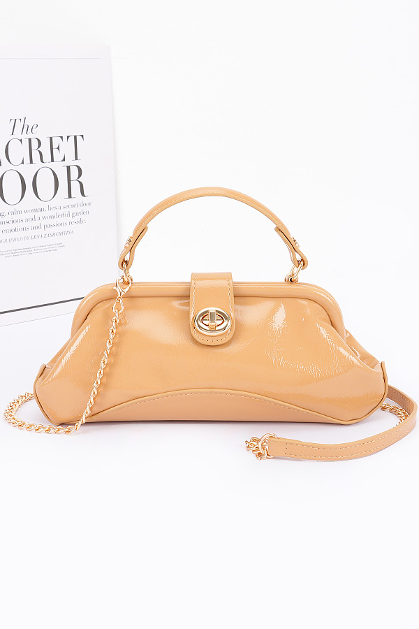 - * Enamel Faux Leather Top Handle Party Clutch