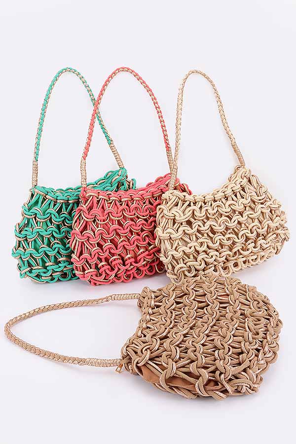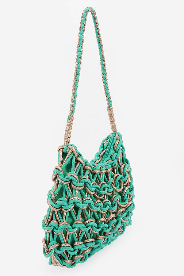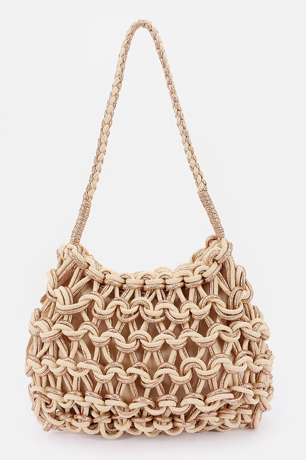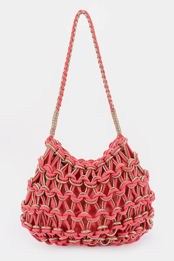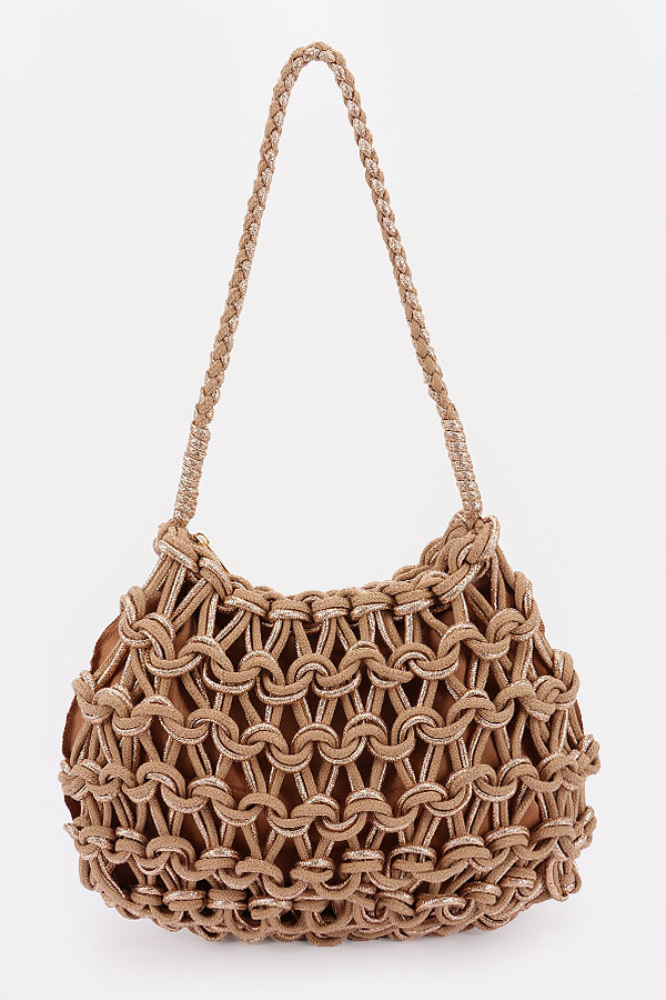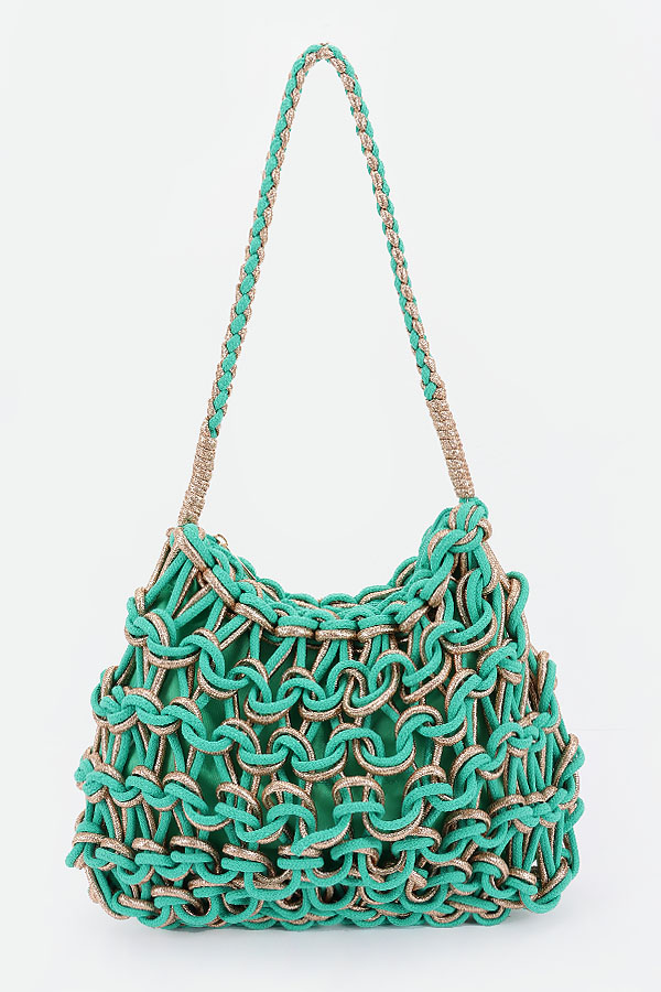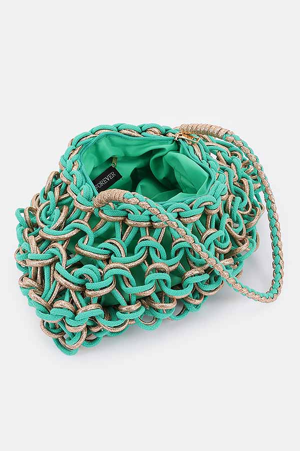 - * This Handmade Metallic and Cotton Braided Bag from H&D Accessories is a unique and stylish accessory. It is crafted with a combination of metallic and cotton threads, intricately braided to create a visually appealing texture. The bag features a spacious interior and a sturdy handle, making it both fashionable and functional.