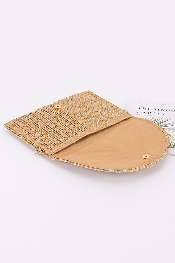 • * This Handmade Metallic Braided Envelope Clutch from H&D Accessories is a testament to artisanal craftsmanship. The clutch showcases an intricately braided pattern, with a metallic sheen that adds a touch of glamour. Its envelope - style design exudes a classic yet contemporary charm. It comes with a detachable strap, offering flexibility in how it's carried. Ideal for those seeking a unique and stylish accessory for special occasions.