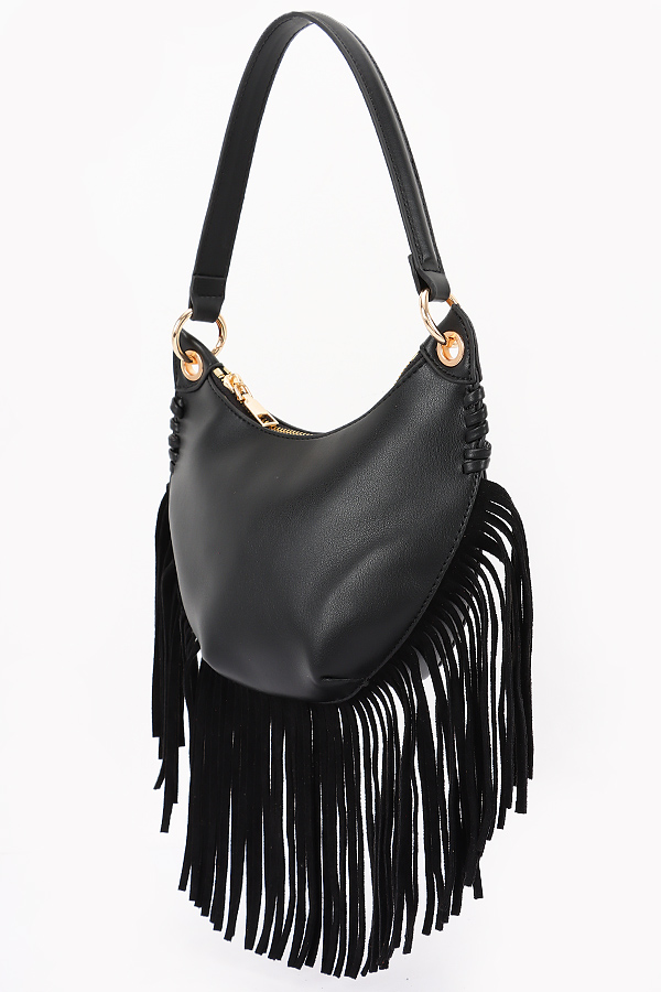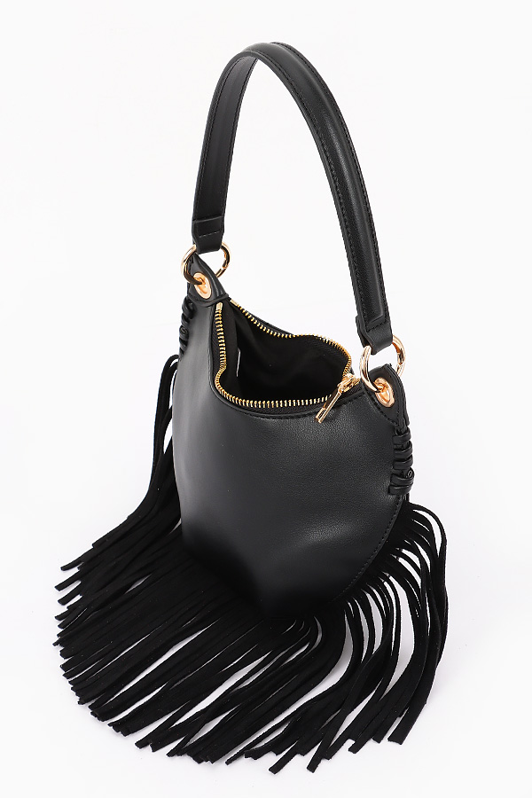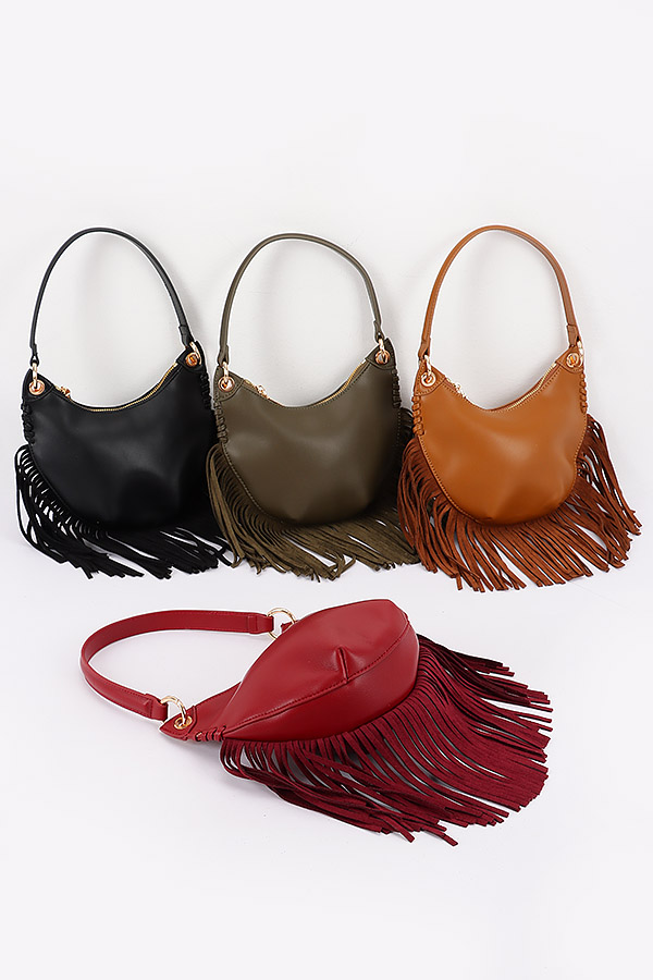 • * This is a bag from H&D Accessories. It has a detachable shoulder strap. The bag features long hanging fringe detailing along the bottom edge and decorative stitching on the sides, creating a bohemian - inspired design.