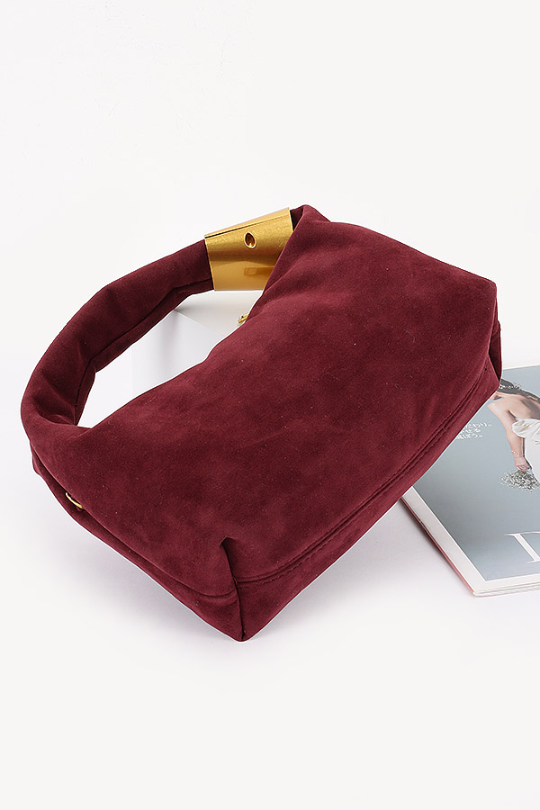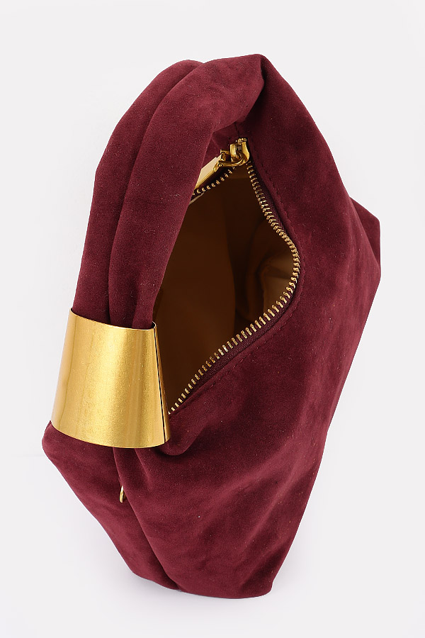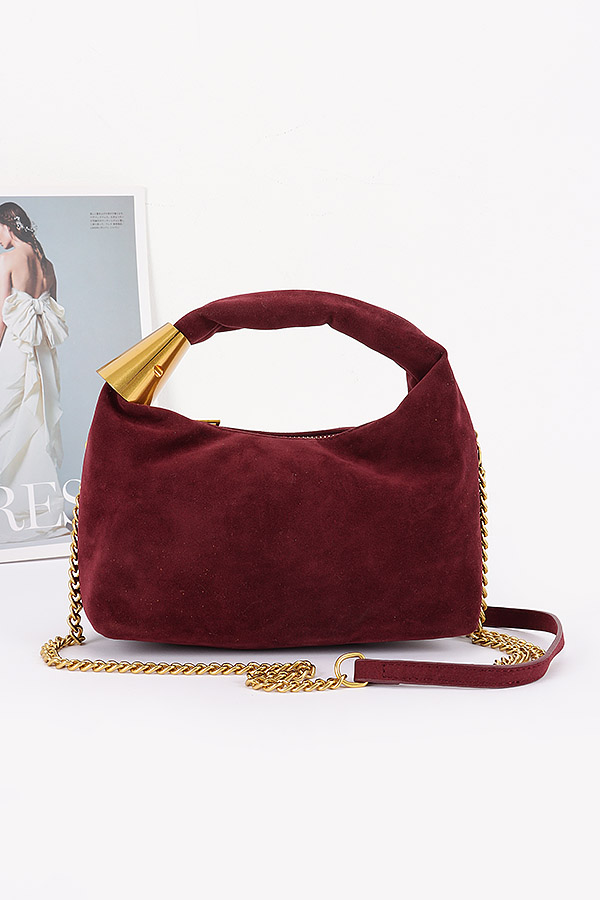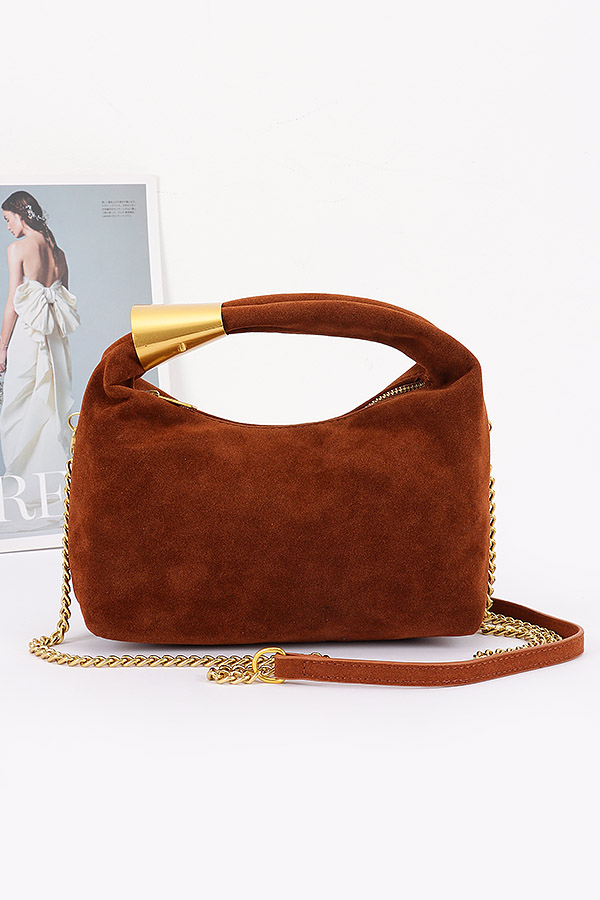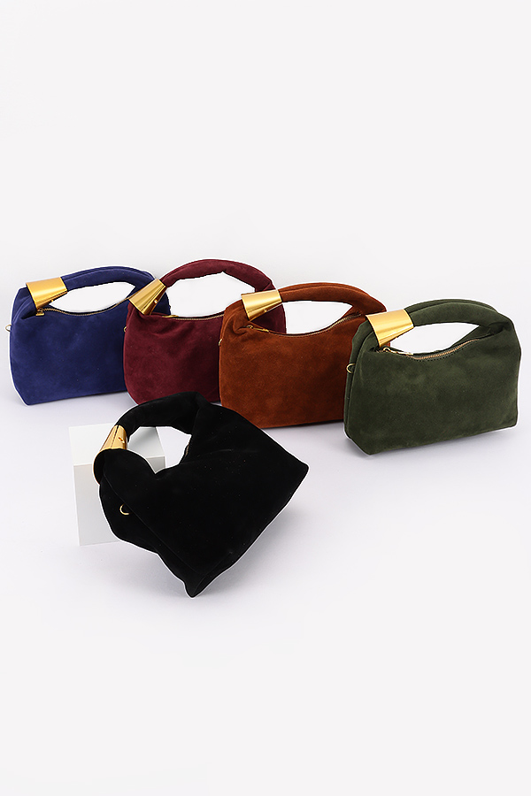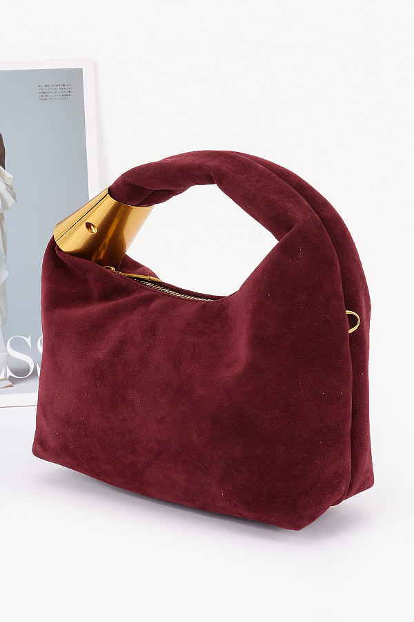 • * Suede Hobo Bag with Gold Accents