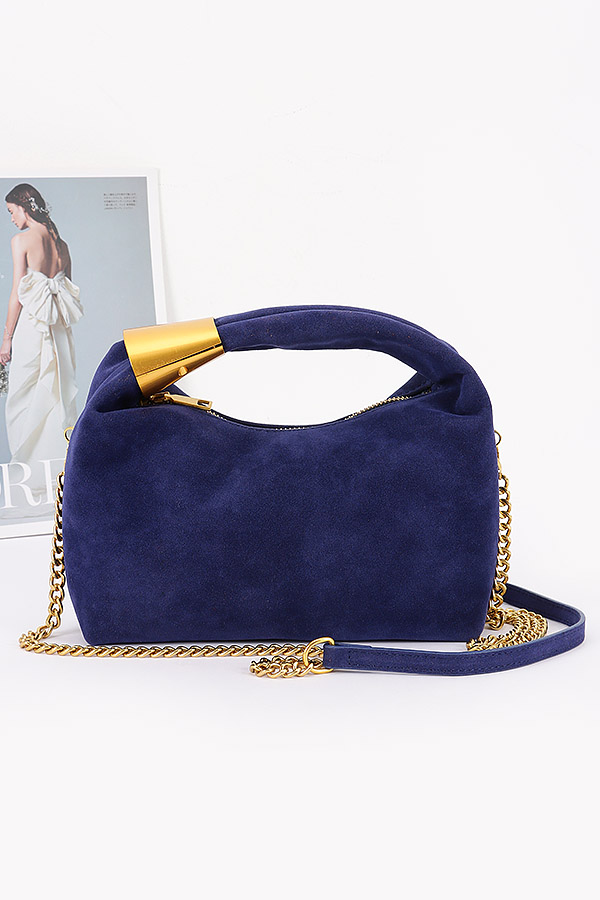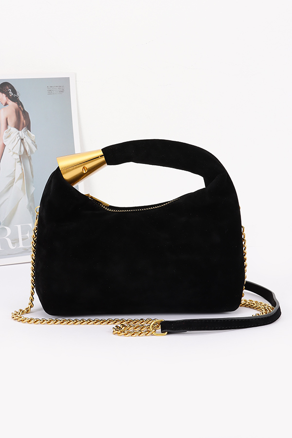 • * This is a stylish handbag with a soft, textured surface. It features a curved handle adorned with a metal accent and comes with a detachable gold - toned chain strap. The bag has a sleek, compact silhouette. From H&D Accessories, it combines elegant design elements for a fashionable look.