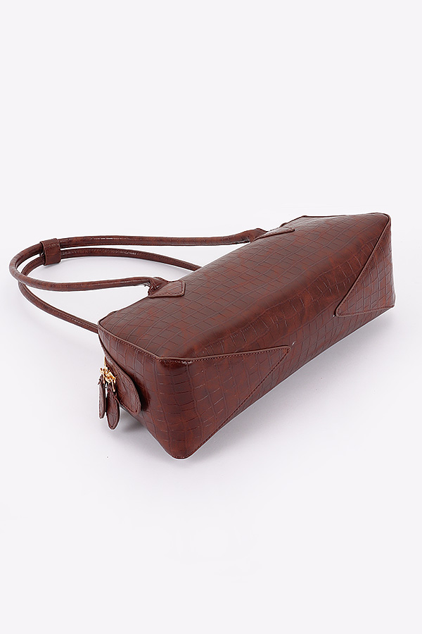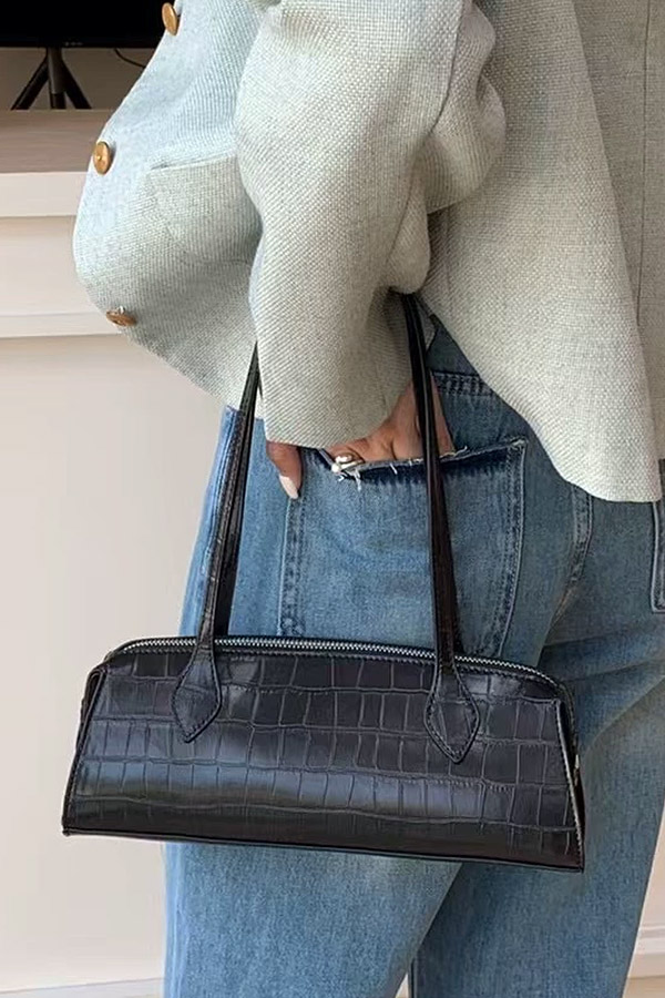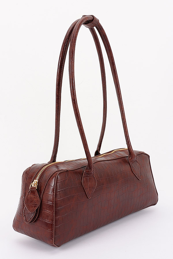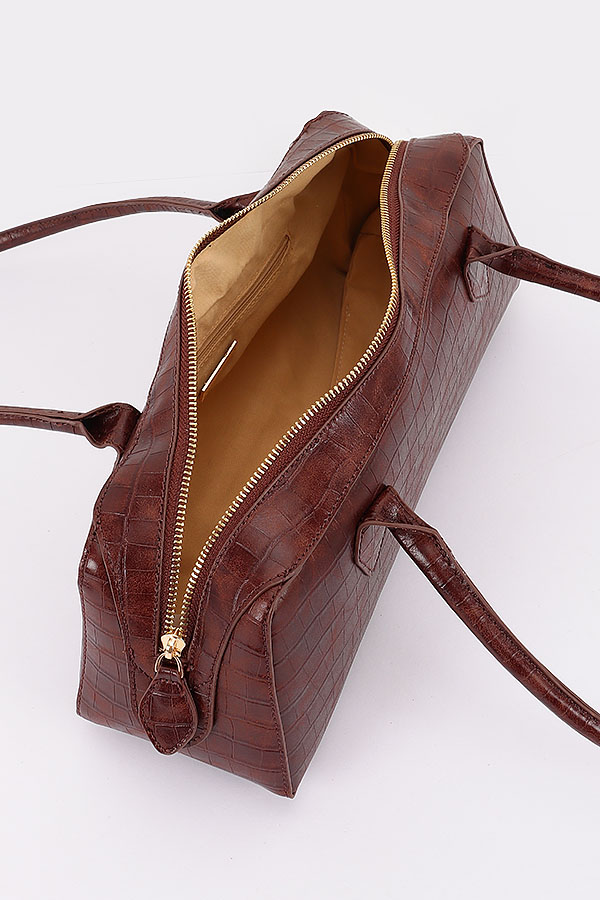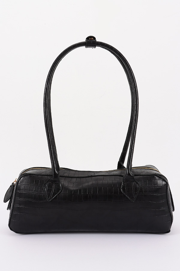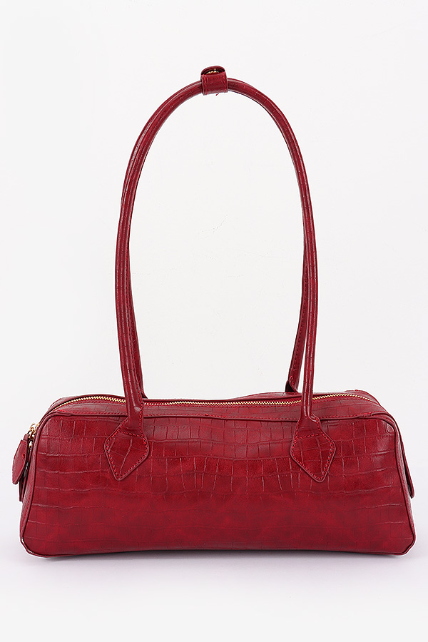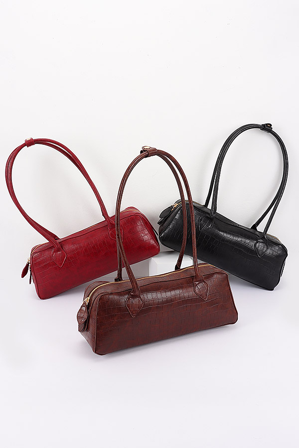 - * This Croc Embossed Barrel Bag from H&D Accessories features a classic barrel shape with a crocodile - embossed texture. It has a top handle for easy carrying and a zipper closure to secure your items. The structured design and textured surface give it a sophisticated look.