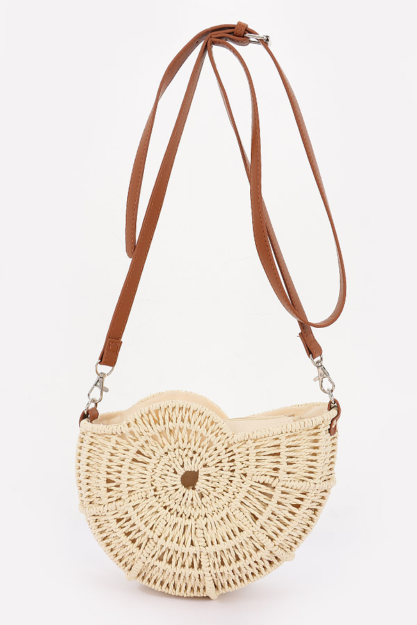 - * This Straw Woven Unique Crossbody from H&D Accessories features an eye - catching, hand - crafted straw - woven design with a half - moon shape. It comes with a leather - like adjustable crossbody strap, blending natural texture and practicality.