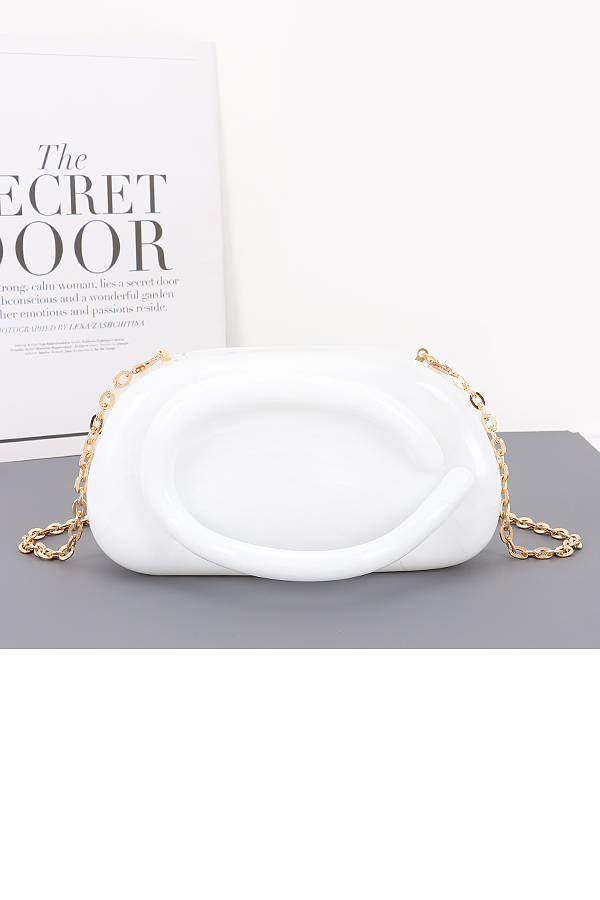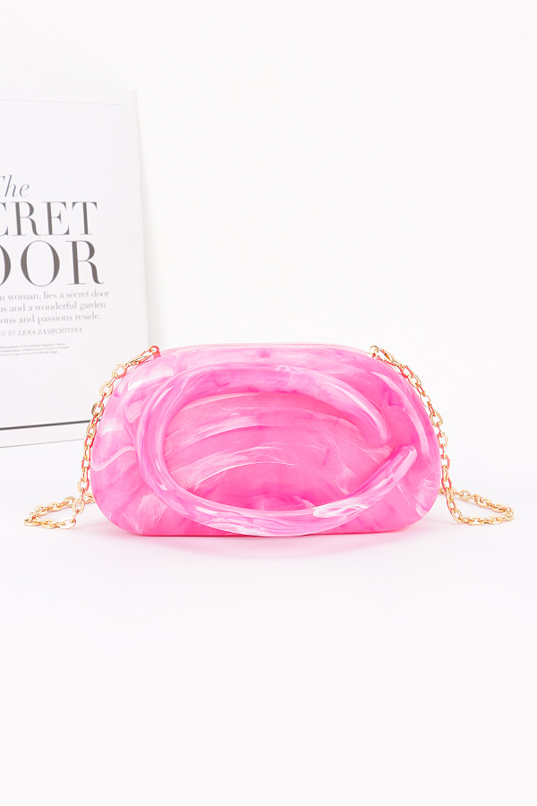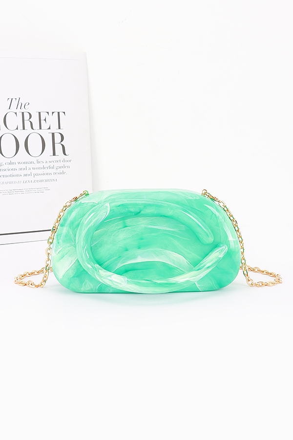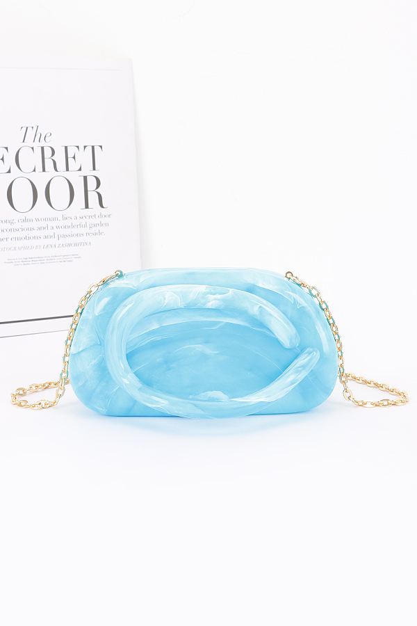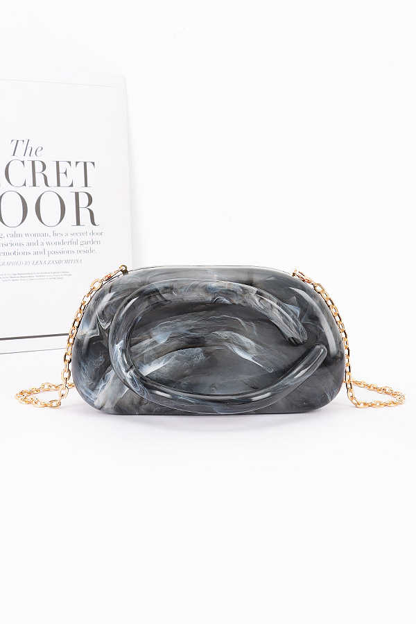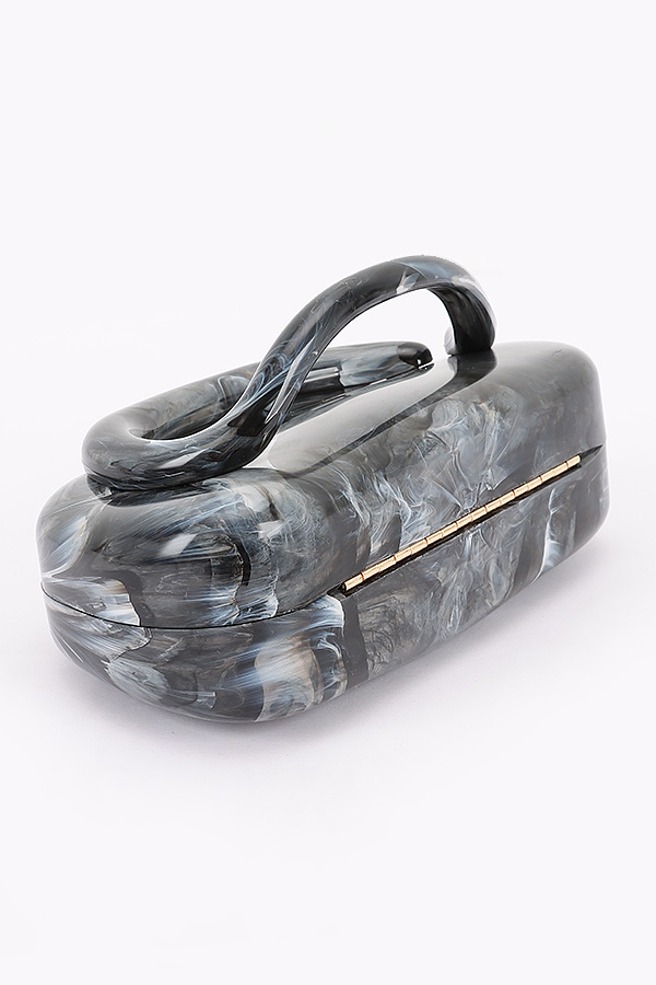- * This Acrylic Marble Handle Clutch from H&D Accessories showcases a unique design. Crafted with acrylic material featuring a marble - like pattern, it has an integrated handle and a gold - tone chain strap for versatile carrying. The compact, stylish shape makes it a standout accessory.