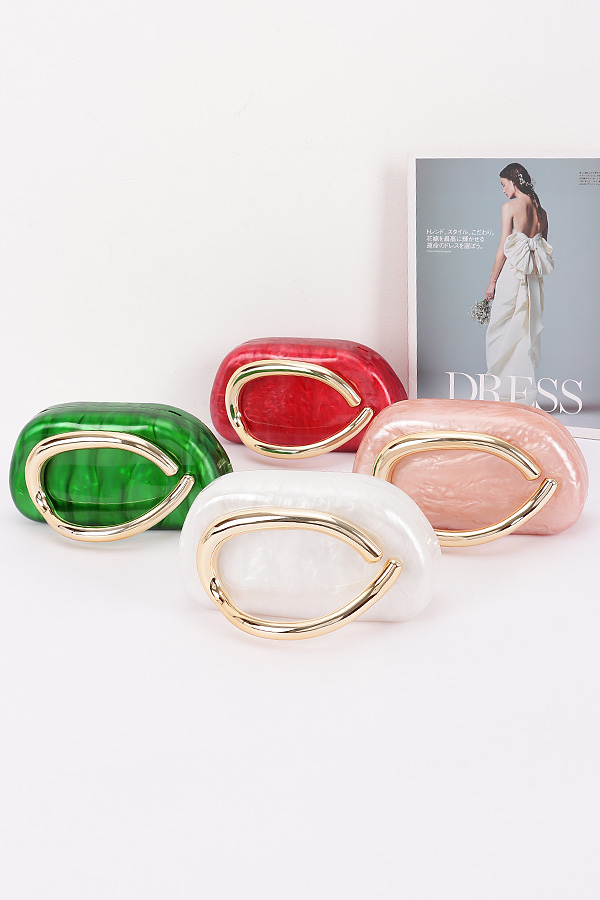 - * This Acrylic Marble Metal Handle Clutch from H&D Accessories has a striking design. It features an acrylic body with a marble - like texture, complemented by a metal handle and a gold - tone chain strap. The compact, stylish shape makes it a standout accessory.