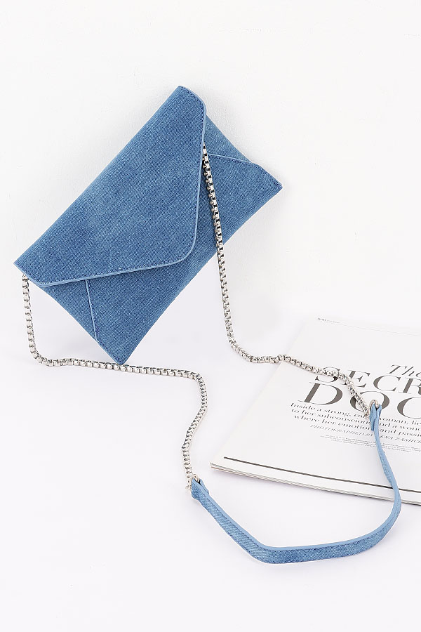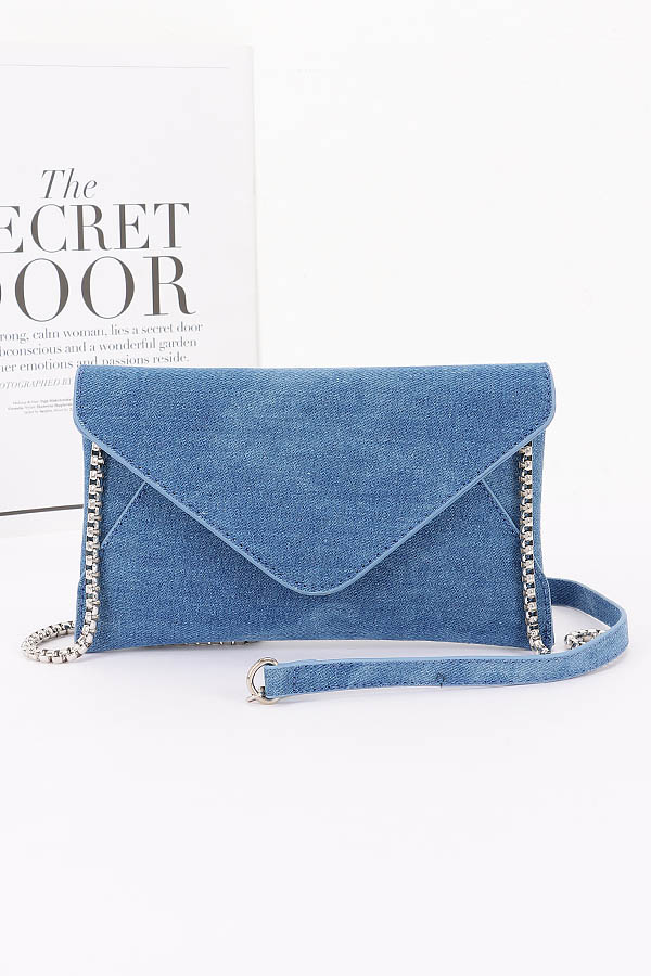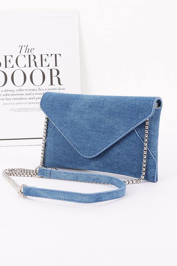 - * This Denim Envelope Clutch from H&D Accessories features an envelope - style design with denim material and chain embellishments. The clutch has a casual yet chic look, perfect for adding a trendy touch to various outfits.