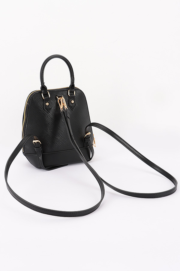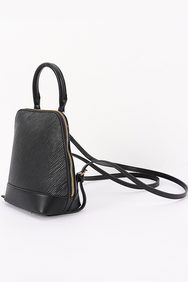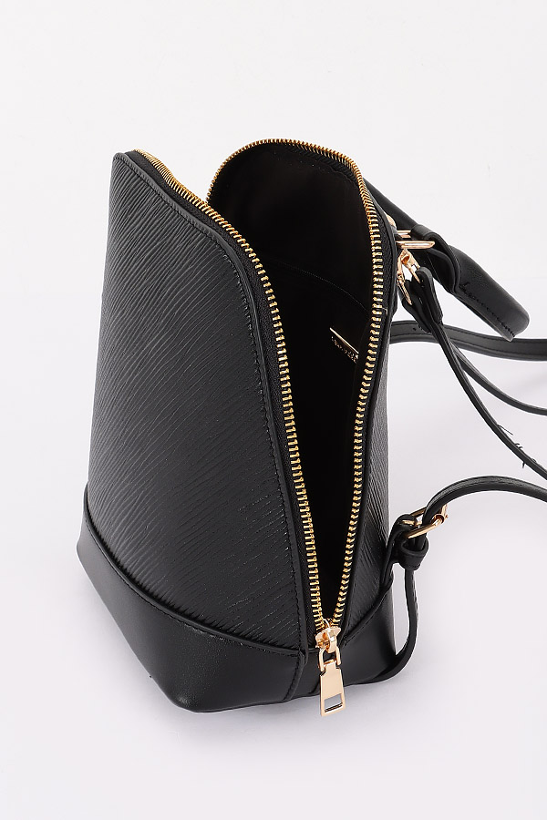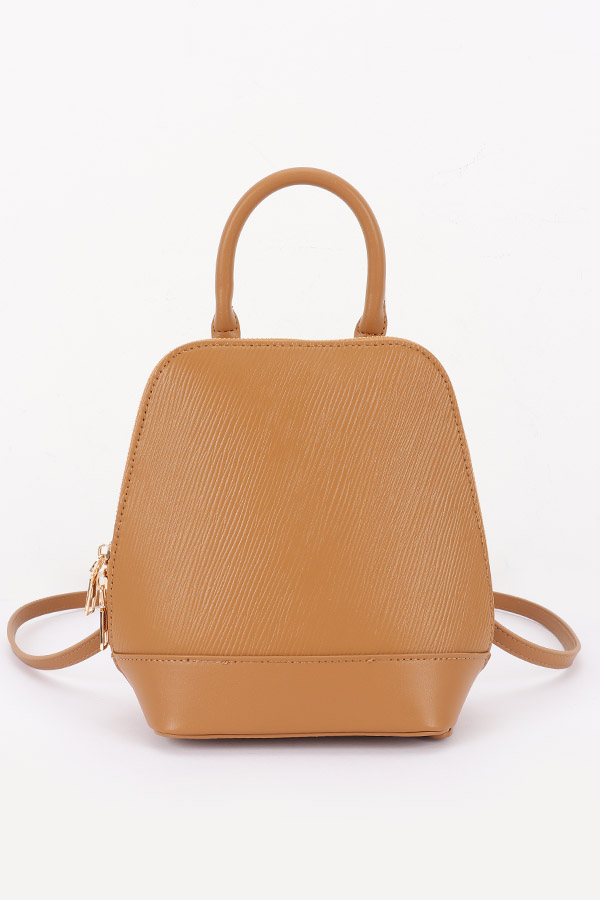 • * This is a Faux Leather Zip Backpack from H&D Accessories. Crafted from textured faux leather with a subtle linear pattern, it features a compact dome-shaped silhouette with a top handle for handheld carrying and adjustable shoulder straps for backpack use. A small gold-tone zip pull adorns the main zipper closure, adding a minimalist accent. The structured design maintains its shape, while the smooth faux leather finish gives a sleek, polished look. Ideal for daily outings such as commuting, shopping, or casual day trips, it pairs well with both casual and semi-casual outfits to blend functionality with style.