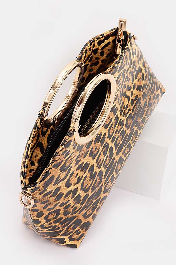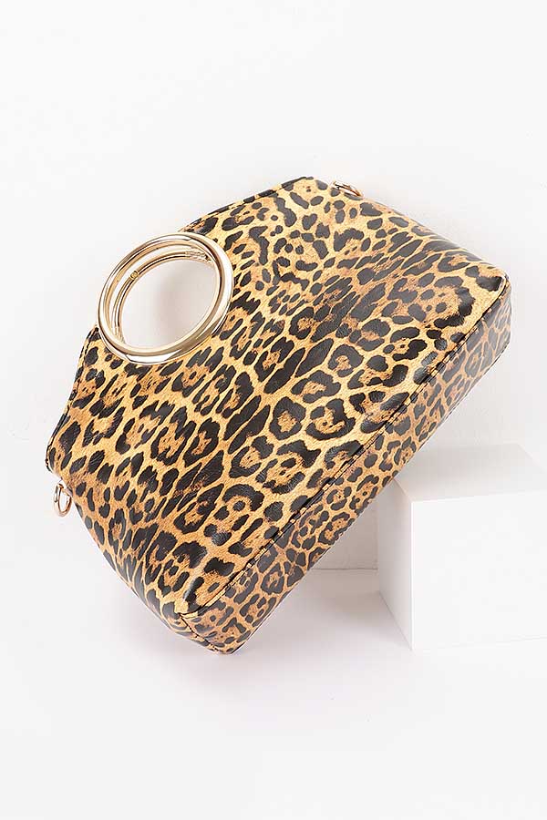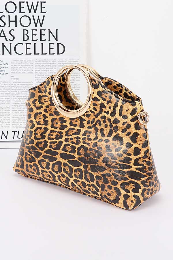 - * This is a Faux Leather Animal Print Metal Handle Bag from H&D Accessories. It showcases a trendy animal - print pattern on faux leather. The bag is designed with a prominent circular metal handle for easy hand - carrying, and also comes with adjustable shoulder straps for versatile wearing. Perfect for adding a bold touch to your outfits during parties, dinners, or casual street - style looks.