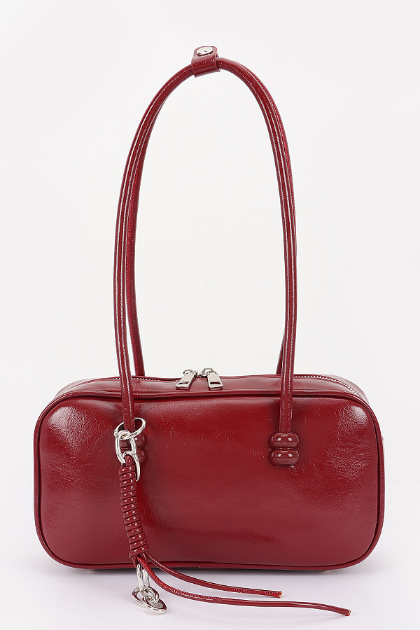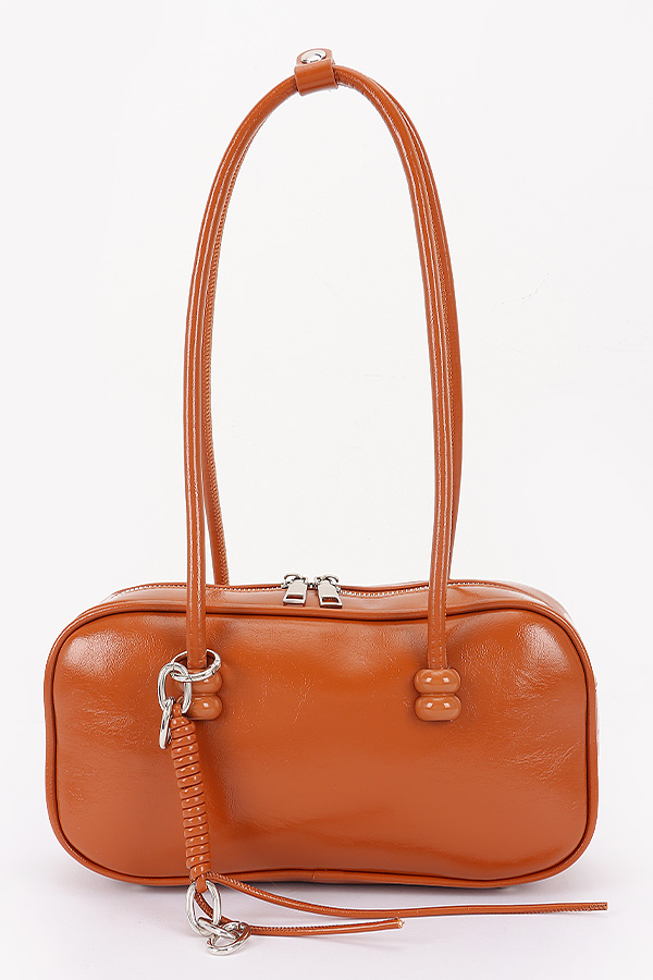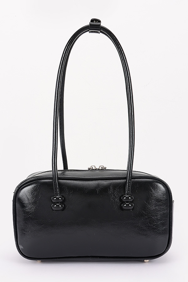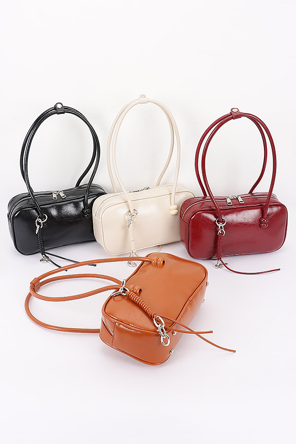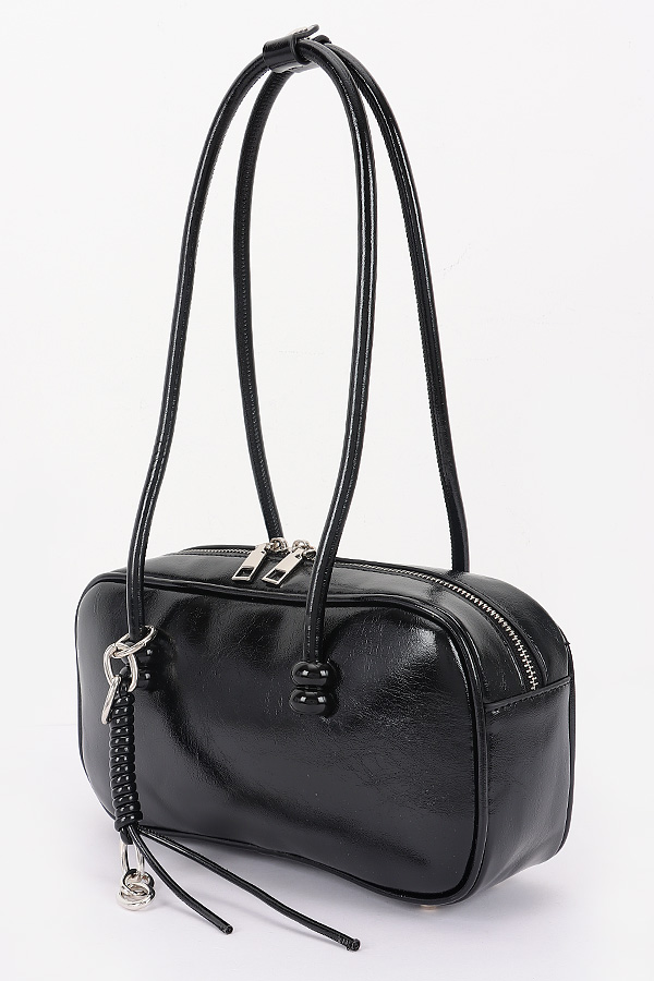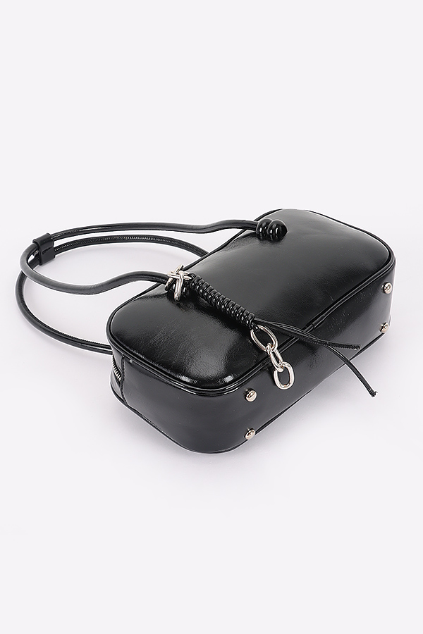 • * This is a Faux Leather Sport Bag from H&D Accessories. Crafted from smooth, glossy faux leather, it features a compact rectangular silhouette with a structured, boxy shape. The top of the bag has two long, slender handles for handheld or elbow carry, while a detachable coiled leather strap with metal hardware adds versatility for crossbody wear. A dual-zipper closure runs along the top edge, ensuring secure storage, and small decorative leather knots accent the handle attachments. The sleek faux leather finish gives it a polished yet sporty aesthetic. Ideal for casual outings, gym sessions, or weekend getaways, it pairs well with activewear, athleisure outfits, or casual streetwear to combine functionality with modern style.