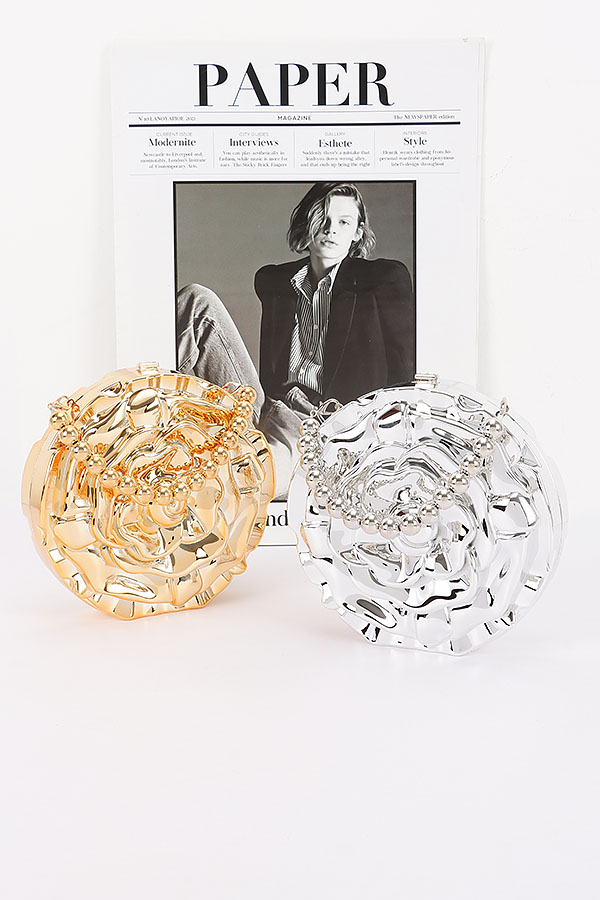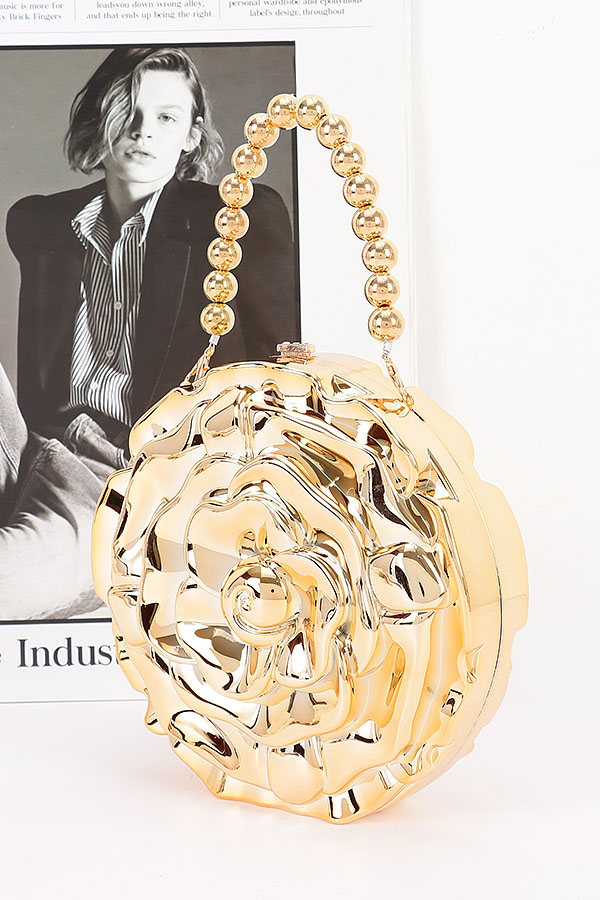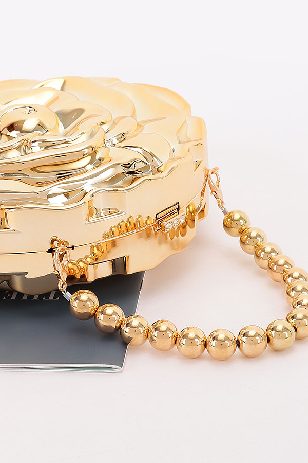 - * This Metallic Acrylic Clutch from H&D Accessories features a stunning 3D flower design on a metallic - looking acrylic body. It comes with a beaded handle and a chain strap, allowing for versatile carrying options, and has an elegant and eye - catching appearance.