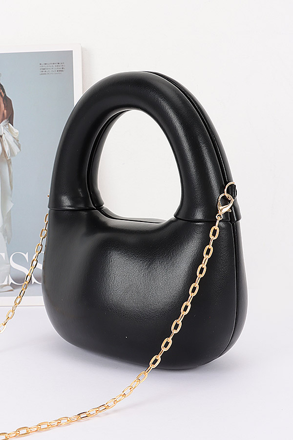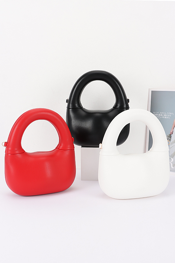 • * This Faux Leather Acrylic Clutch from H&D Accessories features a plush, smooth faux leather exterior paired with a bold, sculpted top handle, complemented by a delicate, detachable chain strap for versatile styling. Ideal for a casual day out with friends, a dinner date, or a weekend shopping trip, it can be carried by the structured handle for a modern, handheld look or worn crossbody using the chain strap for hands-free convenience, offering a compact yet roomy space to hold your essentials while adding a sleek, contemporary touch to any outfit.