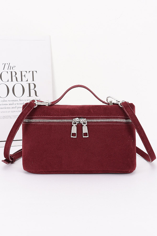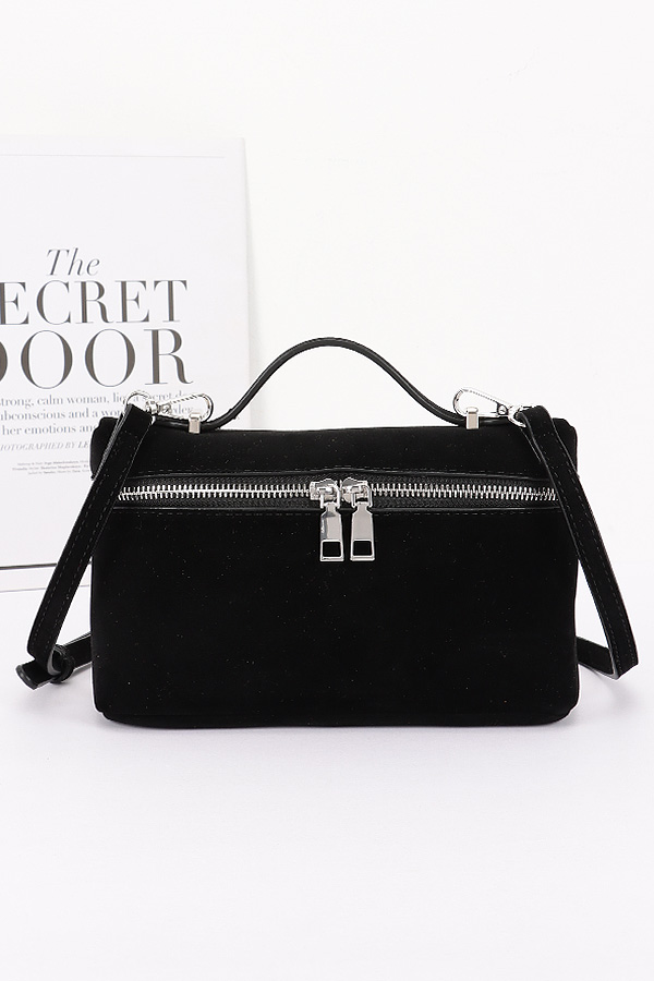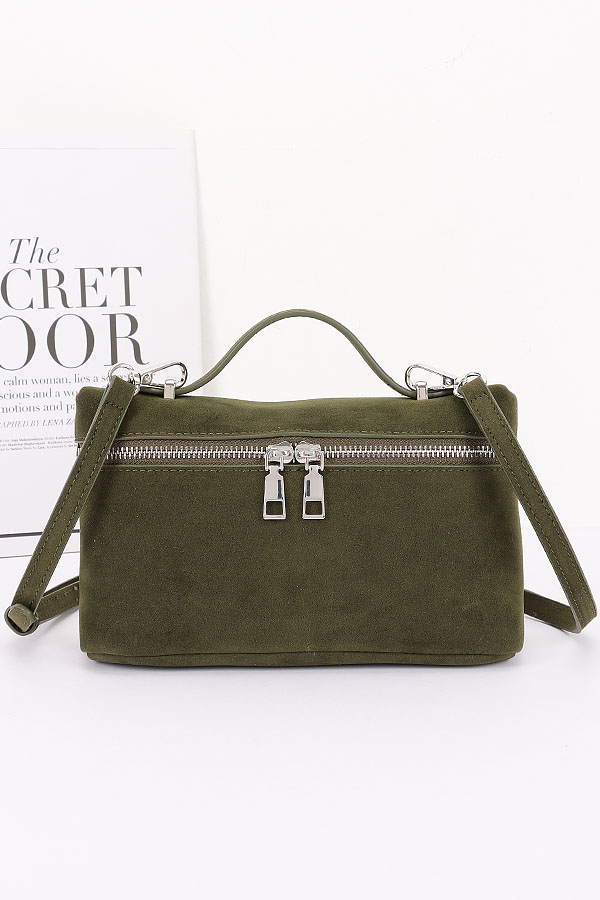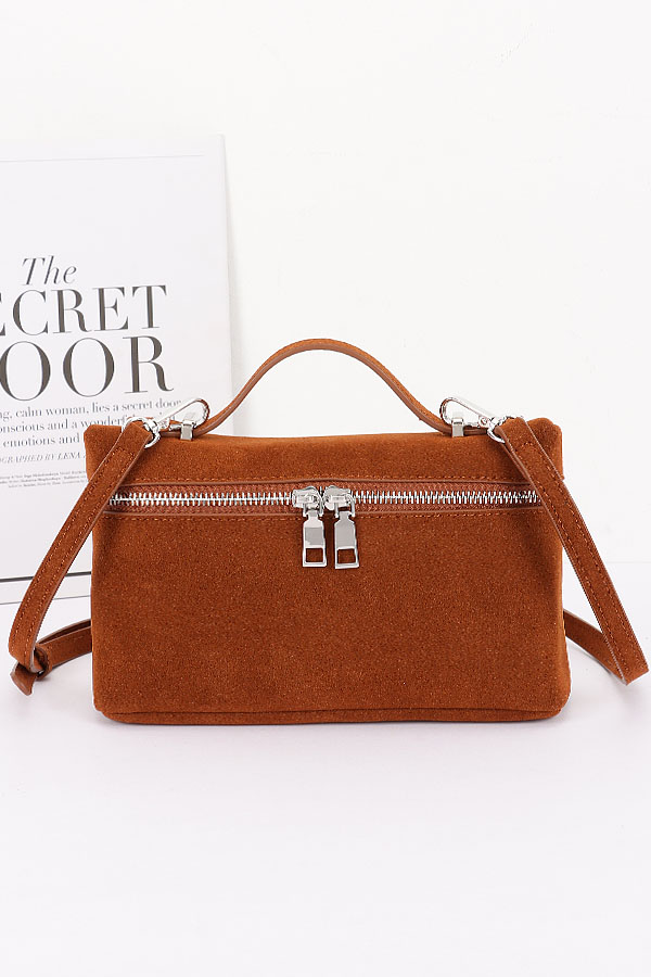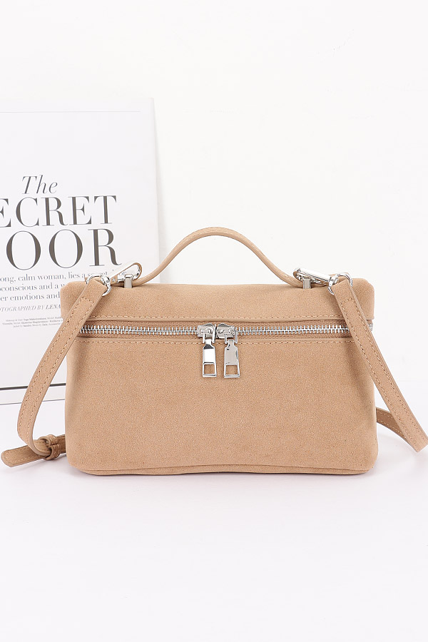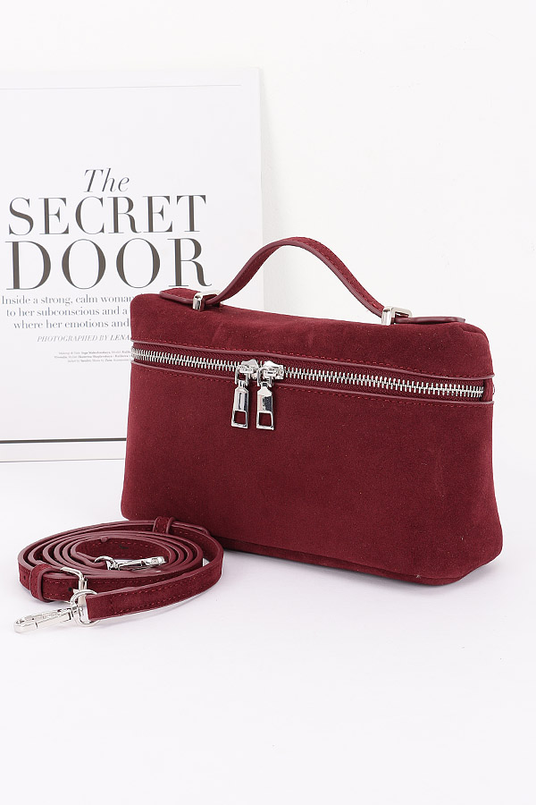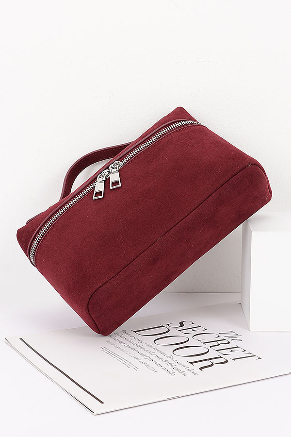 - * This is a Faux Suede Leather Cosmetic Bag from H&D Accessories. Crafted from soft faux suede material, it features a rectangular silhouette with a smooth, velvety texture. The top is equipped with a double - zipper closure, each zipper pull is a silver - toned metal tab, ensuring secure storage of cosmetics. It comes with a short top handle and an adjustable, detachable shoulder strap for versatile carrying options. The clean and minimalist design makes it suitable for both travel and daily use. Perfect for organizing and carrying makeup essentials during business trips, weekend getaways, or daily commutes, keeping your cosmetics neat and easily accessible.