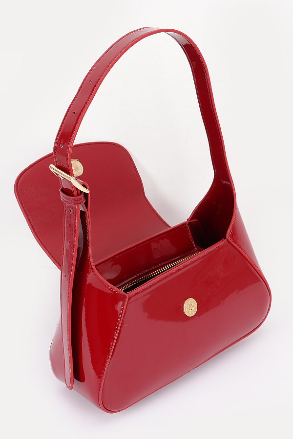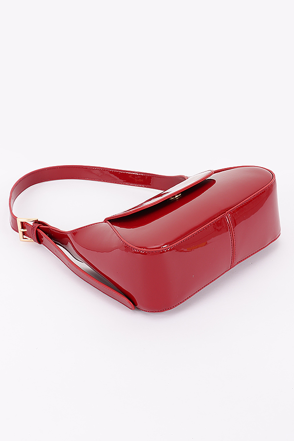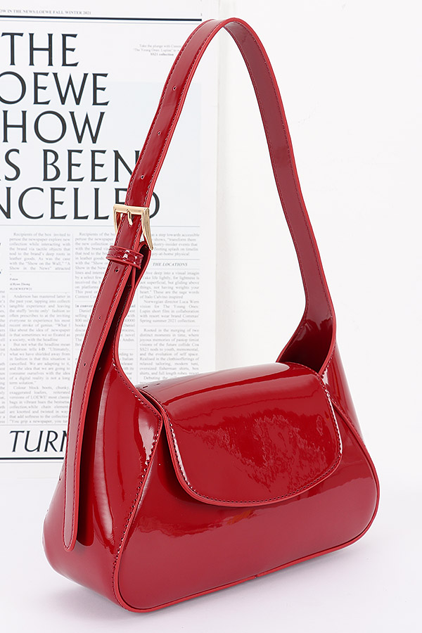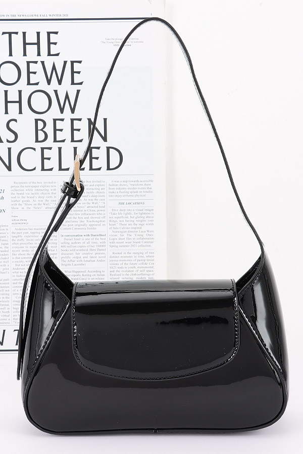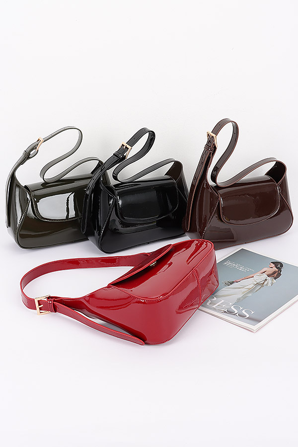 - * This Enamel Faux Leather Shoulder Bag from H&D Accessories features a sleek design with a glossy enamel finish, a shoulder strap, and a flap closure. It has a modern and stylish appearance, giving it a sophisticated and trendy vibe.
