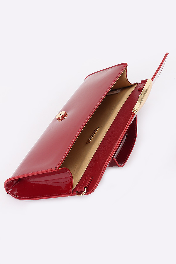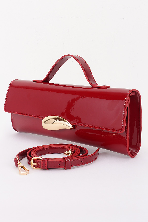 - * This Enamel Faux Leather Clutch from H&D Accessories features a sleek design with an enamel - like faux leather finish and a distinctive metallic clasp. It comes with both a top handle and an adjustable shoulder strap, offering versatile carrying options.